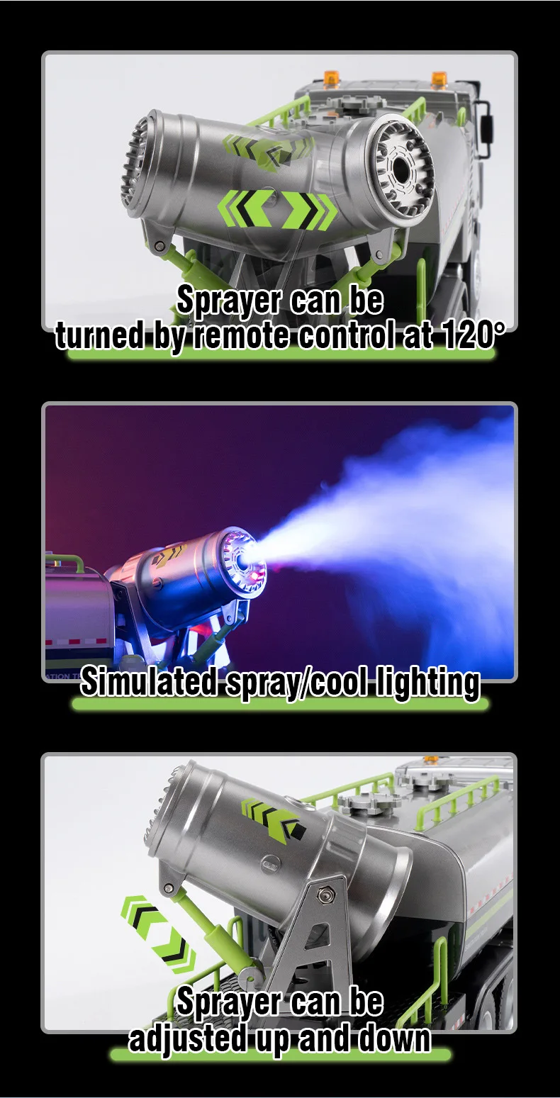 1.El rociador se puede girar mediante control remoto en 120° y se puede ajustar hacia arriba y hacia abajo