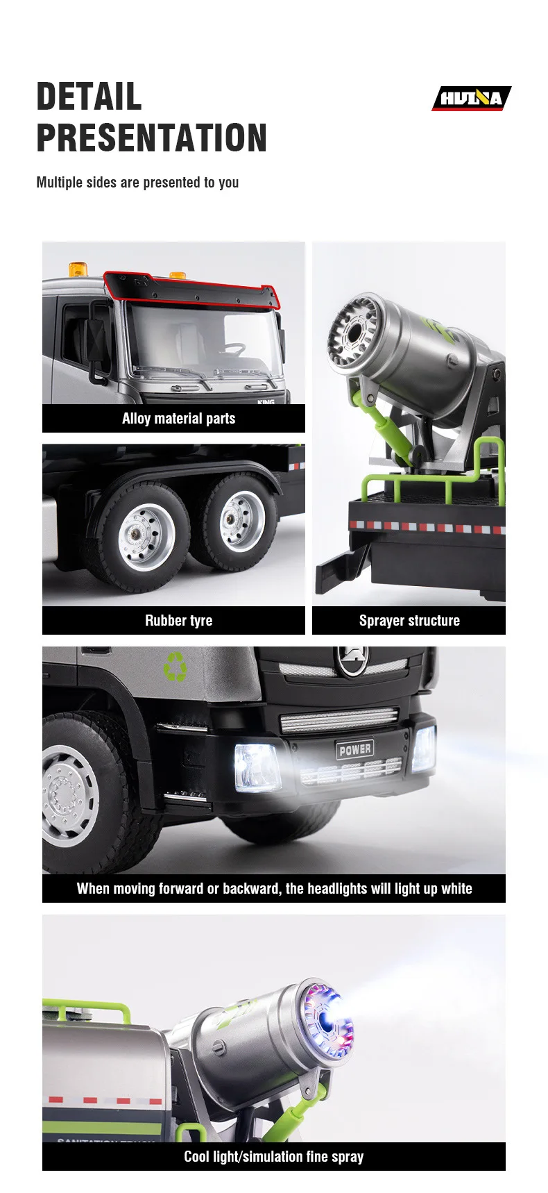 Luces de la carrocería: 2 luces en la parte delantera del automóvil, 4 luces en el cubo rociador