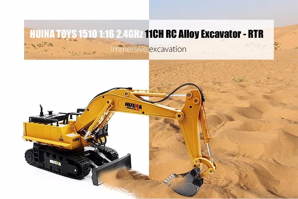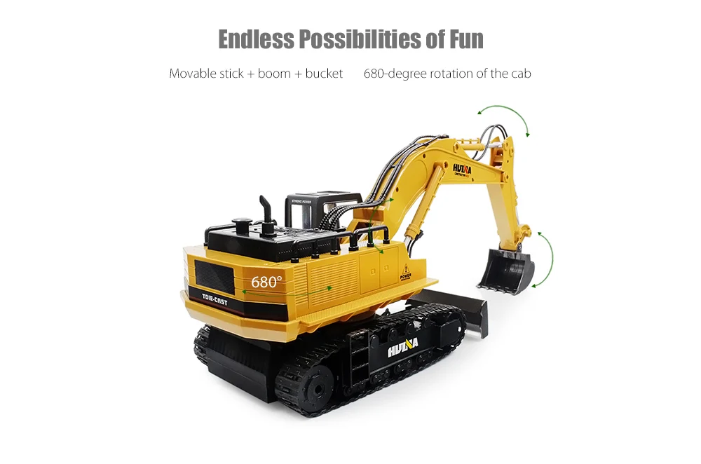 JUGUETES HUINA 1531 1:16 2,4 GHz 11 canales ●El boom y el palo se mueven hacia arriba/abajo. para hacer que el balde cargue o descargue la tierra, arena o cualquier otra cosa