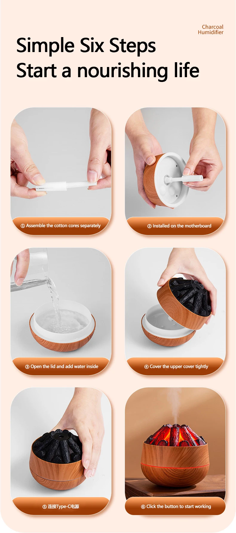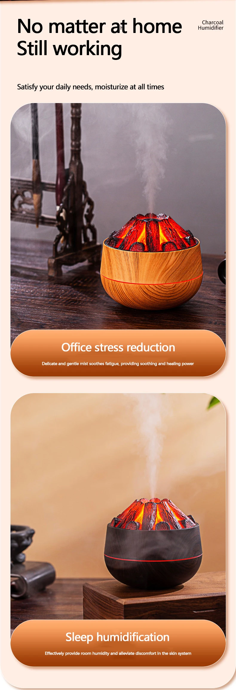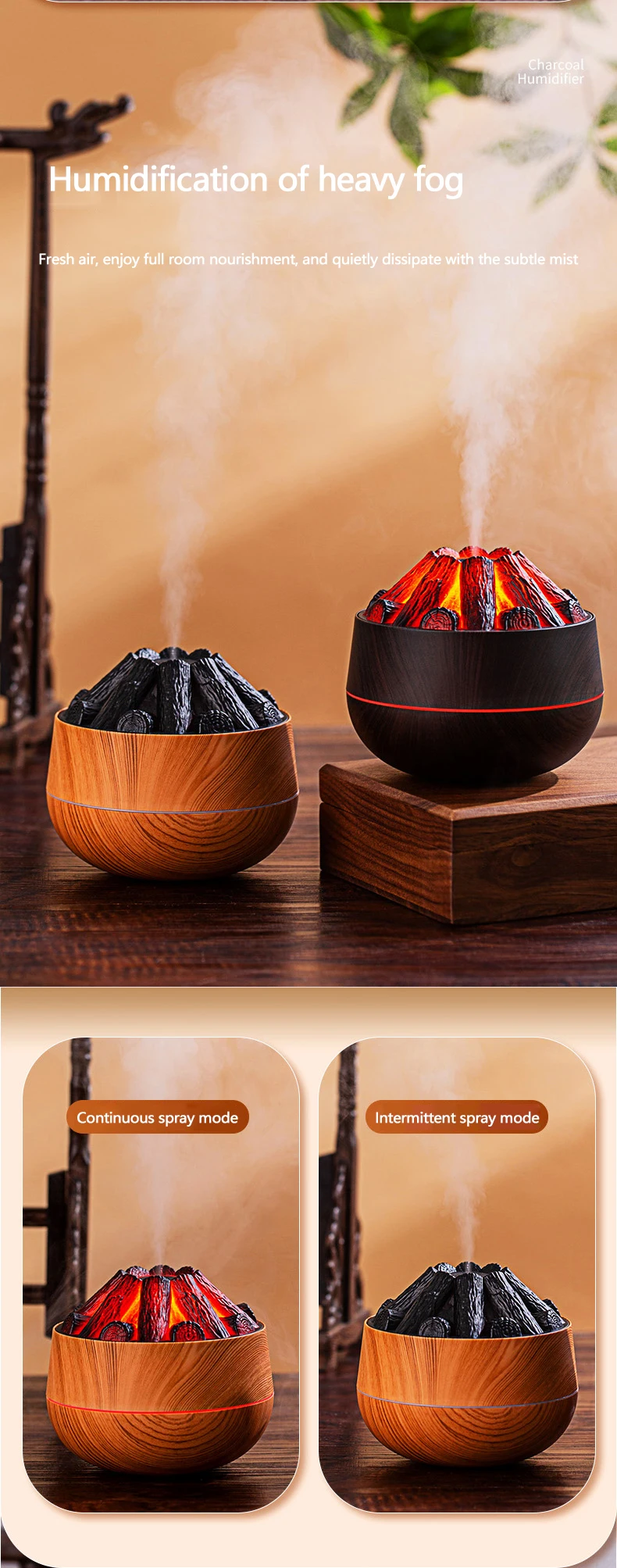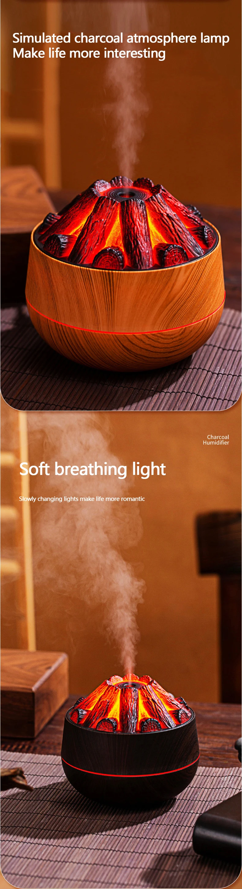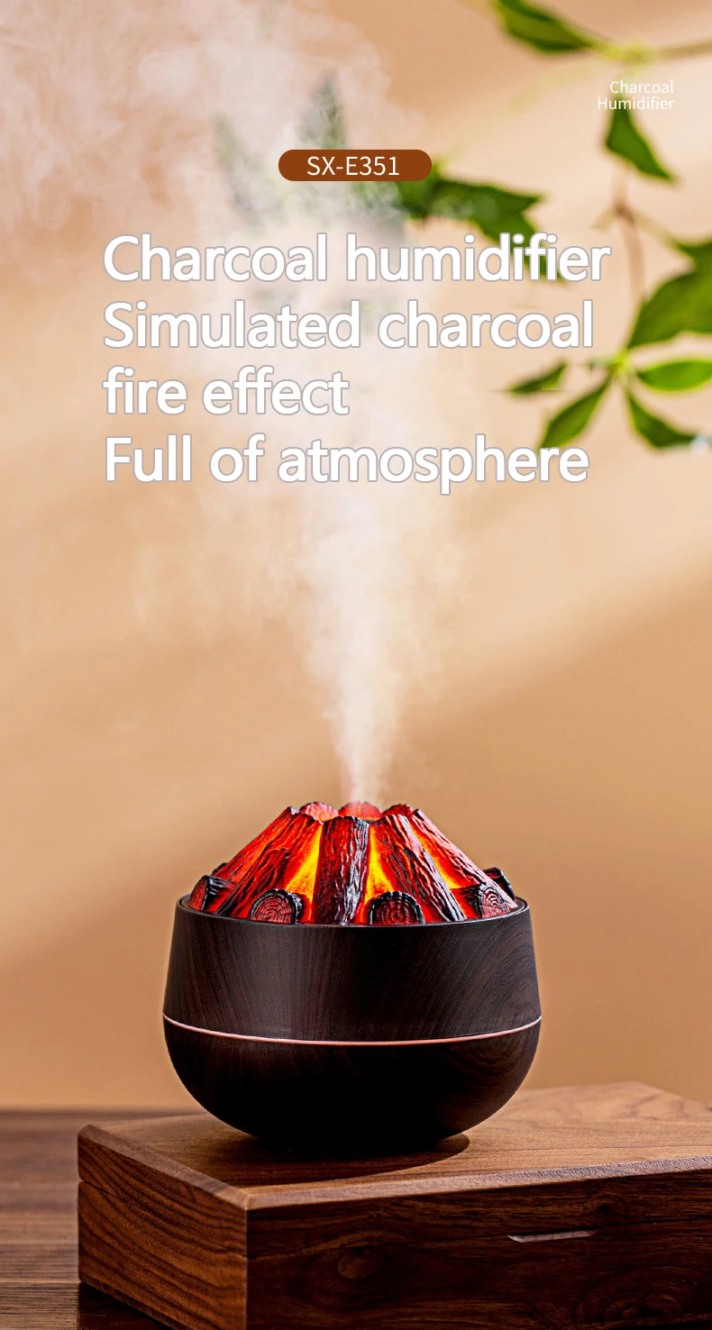 Comprar Humidificador de carbón vegetal para el hogar, humidificador de aire pequeño y portátil de gran capacidad, con USB, de escritorio, Artificial, 300ml