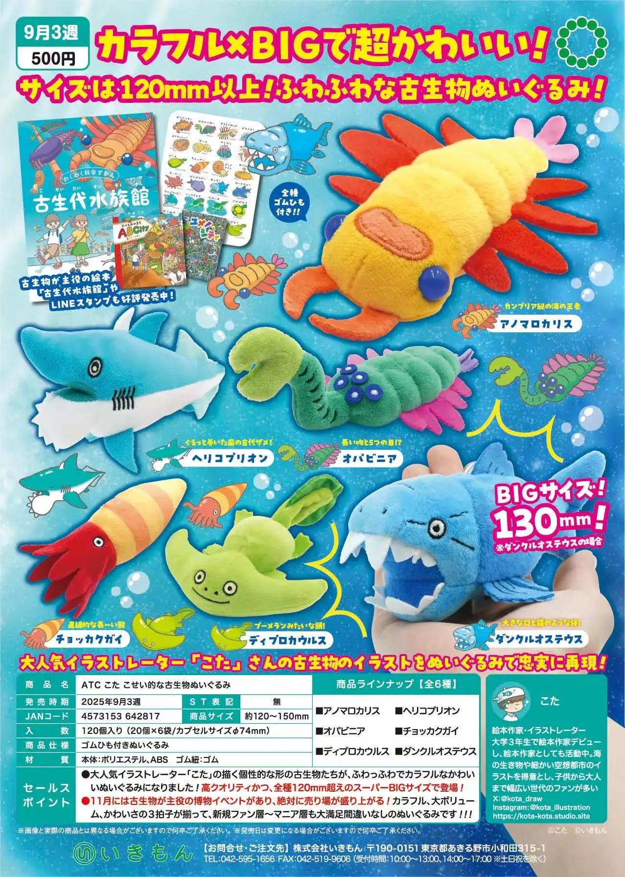 ATC Art Unib Technicolor Kota Kosei-juguetes de peluche de animales prehistóricos, juego de 6 Los únicos animales prehistóricos dibujados por la popular ilustrador Kota se han convertido en peluches esponjosos y coloridos. Alta calidad y tamaño súper grande de más de 120 mm.