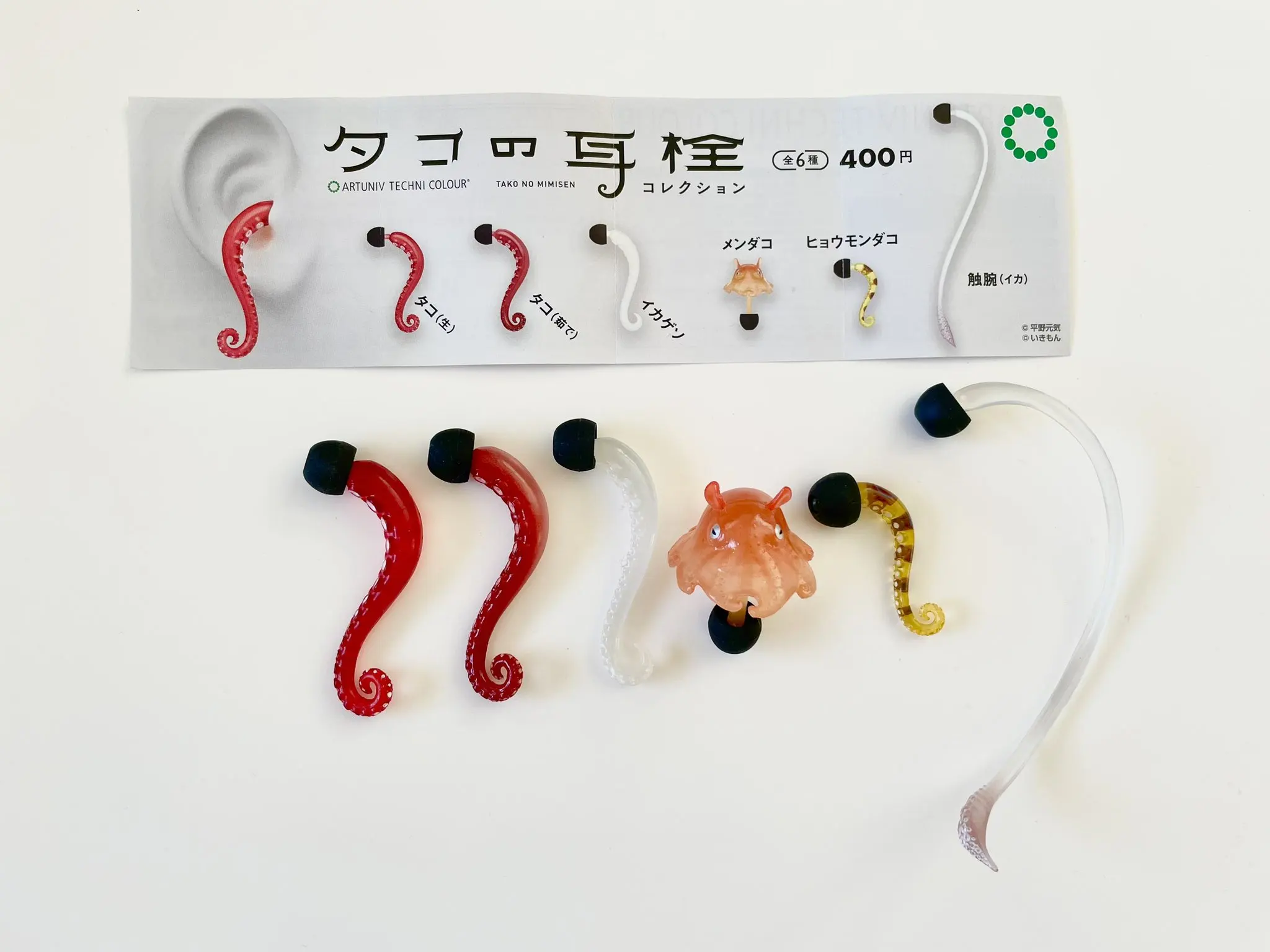 Note: Order 6 pieces randomly , we'll send buyer a full setThe lineup includes not only raw and boiled octopus, but also mendako and 140mm squid tentacles. This product is a pun on the idiom "You can get calluses in your ears," and is a capsule toy made by glass artist Genki Hirano.The octopus-shaped ear plugs produced and sold by glass artist Genki Hirano have been turned into capsule toys! The glass work that became the basis of the product is a topical work that has attracted attention on SNS with a shocking visual that can actually grow the legs of a living creature "octopus" by punning on the idiom "You can have an octopus in your ear". ! In addition to "octopus (raw)", the lineup includes "octopus (boiled)", "tentacles (squid)", "Ikageso", "Hyomon octopus", and "Mendako" under the supervision of Mr. Hirano. "Tentacle (squid)" is a big size of 140mm! In order to reproduce the nuances of the glass work, a clear material with a sense of transparency is used. A more stylish finish! It has an unforgettable impact once you see it, and can be used as a stylish accent or as a joke item. Please take it in your hand and enjoy it!▲Octopus (raw)▲Octopus (boiled)▲ Ikageso▲ Tentacles (Squid)▲ Mendako▲Leopard octopusProduct SummaryProduct Name: ATC “Octopus Earplugs Collection”Publisher: Ikimon Co., Ltd.Release date: Sequentially from January 19, 2023 (may vary slightly depending on the region)Number of types: 6 types in totalSize: about 40-140mm in heightReleased at capsule vending machines nationwide Package: Original gashapon ball pack