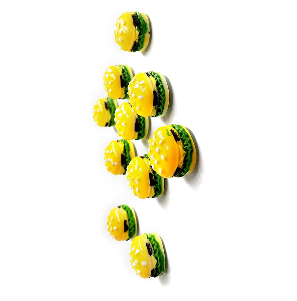 Imán magnético para nevera de Hamburgo, pegatina de resina para refrigerador de dibujos animados de comida, decoración del hogar, decoración del hogar, accesorios de cocina, 10 Uds.