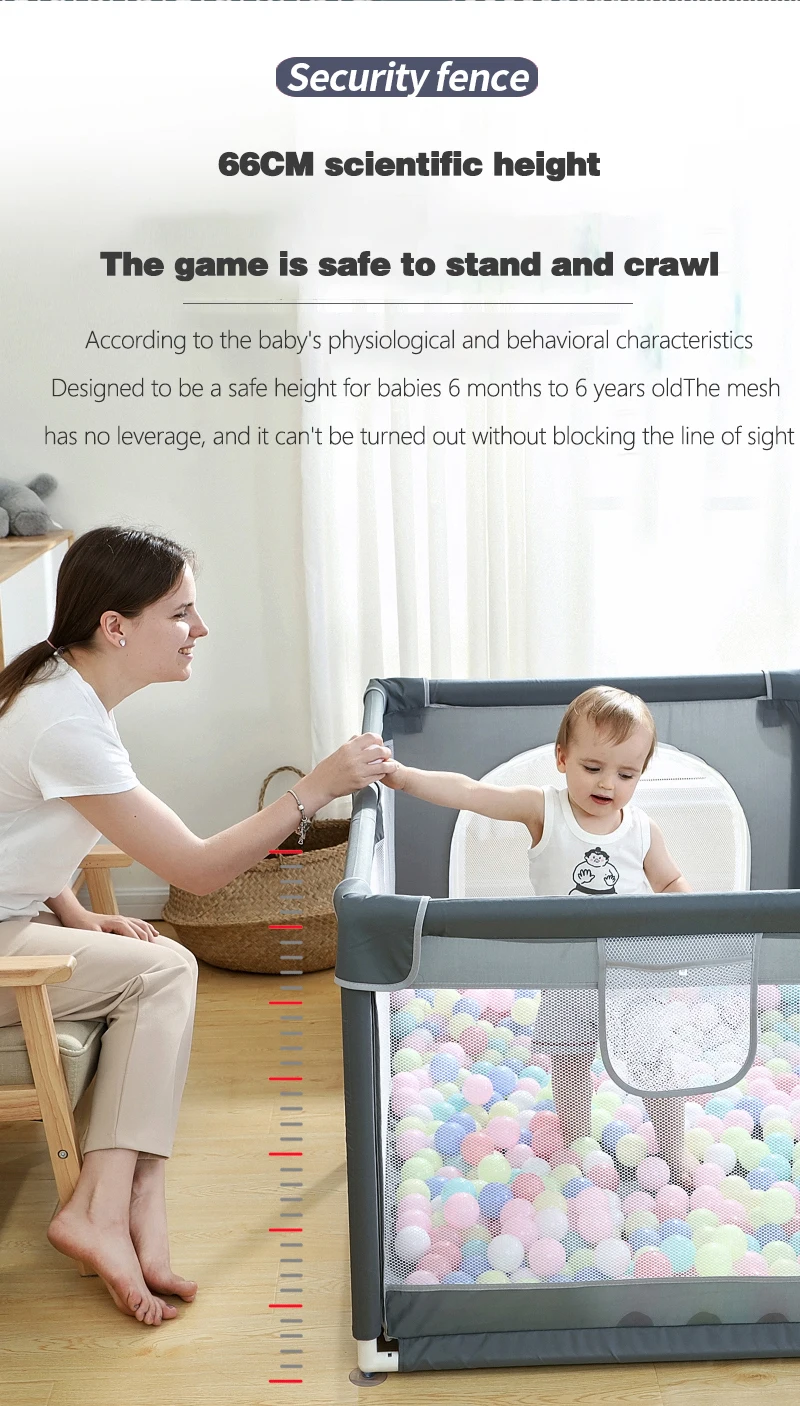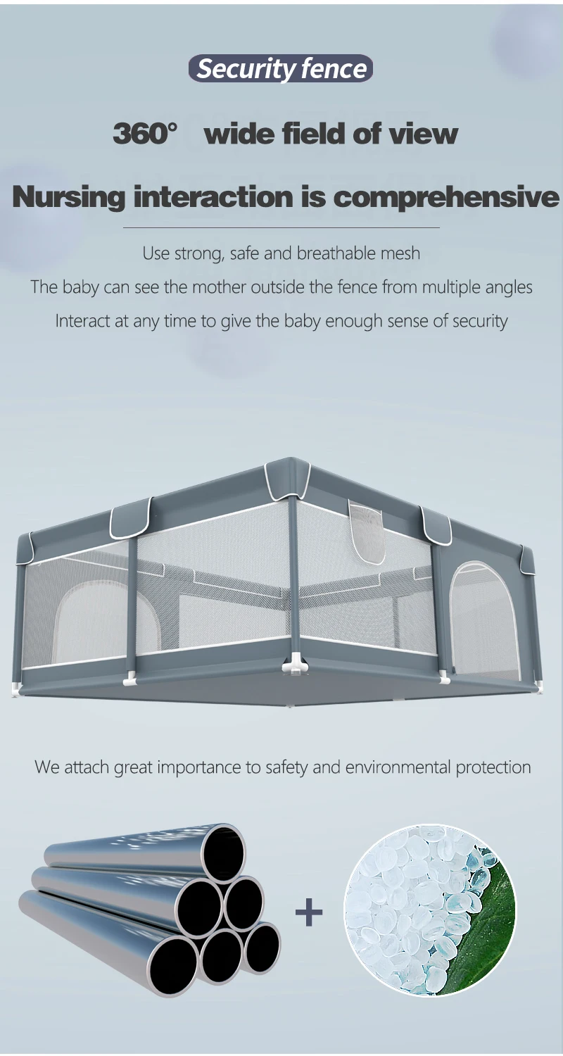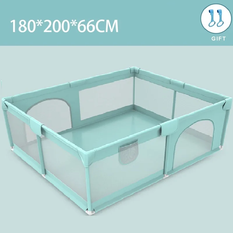 Producto: Parque de doble puerta Tamaño: 150*180*66cm Color: gris, verde, rosa Material: tela Oxford + tubo de acero espumado + conector de plástico Edad adecuada: 0-6 años