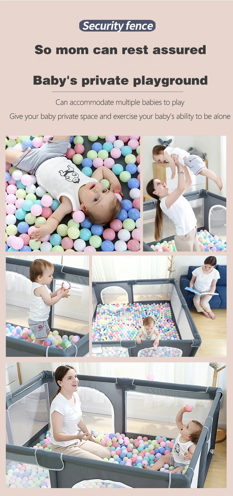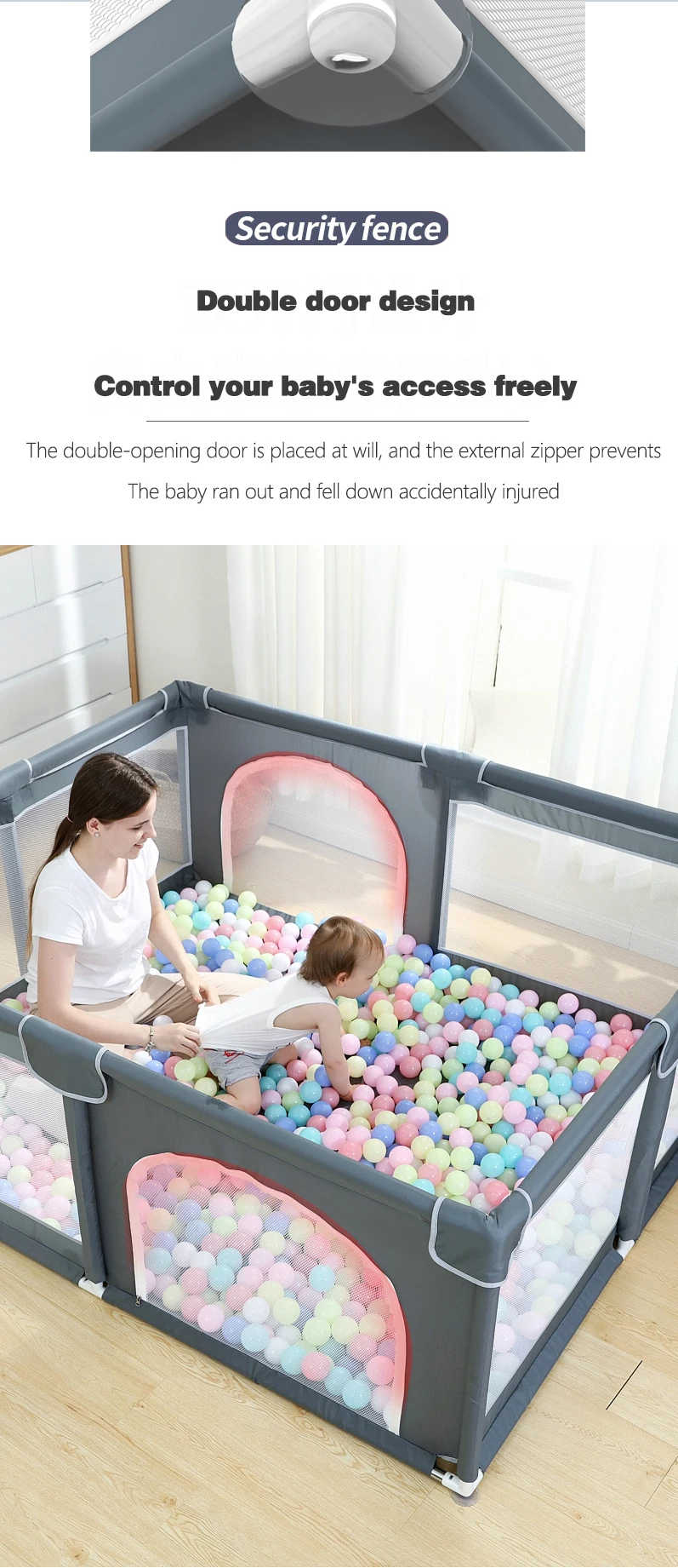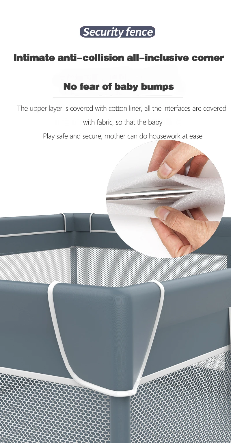 Producto: Parque de doble puerta Tamaño: 150*180*66cm Color: gris, verde, rosa Material: tela Oxford + tubo de acero espumado + conector de plástico Edad adecuada: 0-6 años