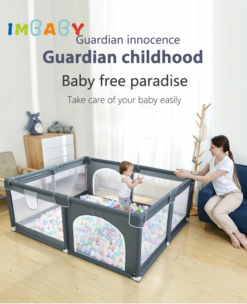 IMBABY Pajeros para bebés, valla para bebés de doble puerta, parque infantil de 150x180cm para niños, parque infantil grande para bebés, pelotas para niños, barrera para piscina
