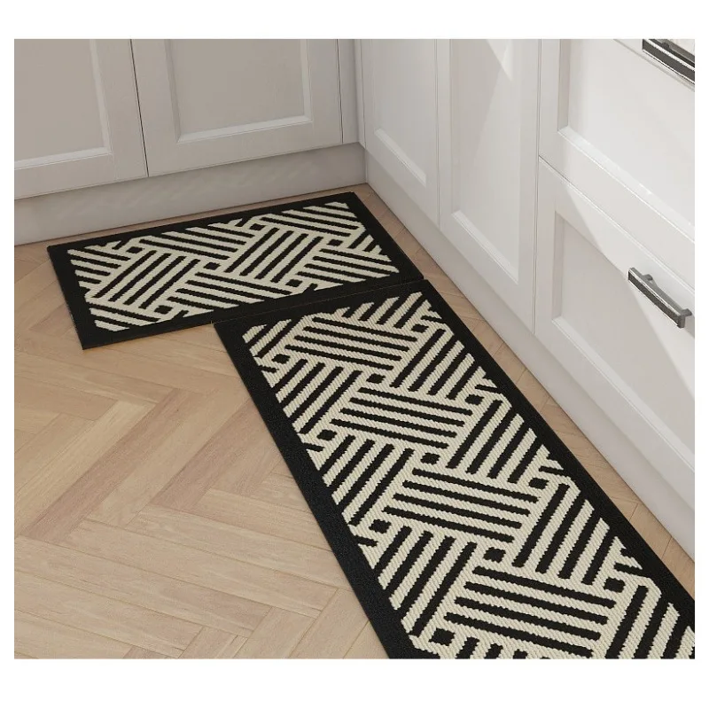 Comprar Ins-alfombra de suelo a rayas para cocina, alfombra cuadrada resistente al aceite, absorbente de agua, moderna, de polipropileno, para dormitorio
