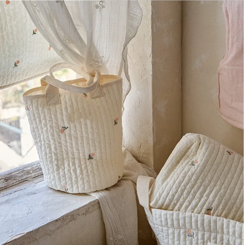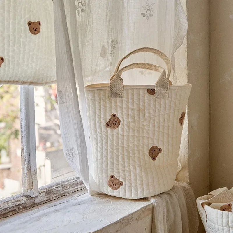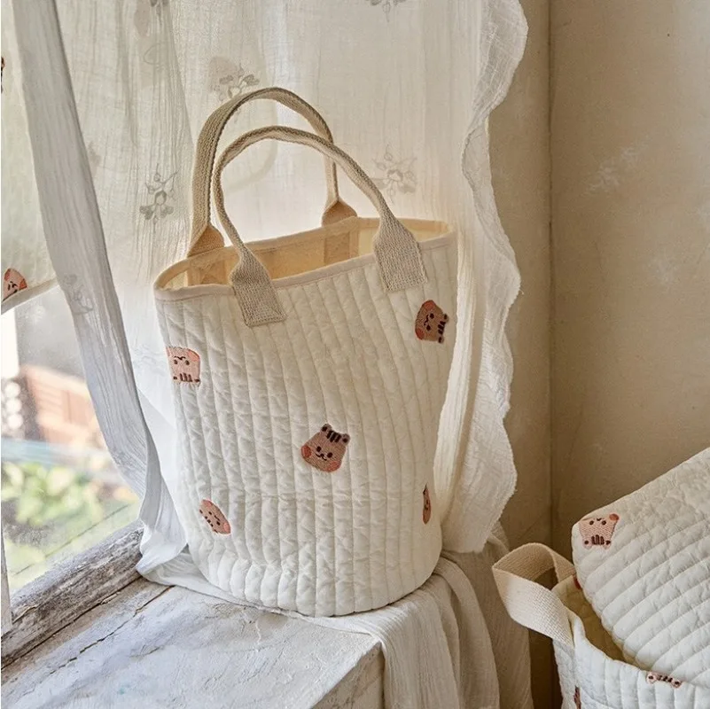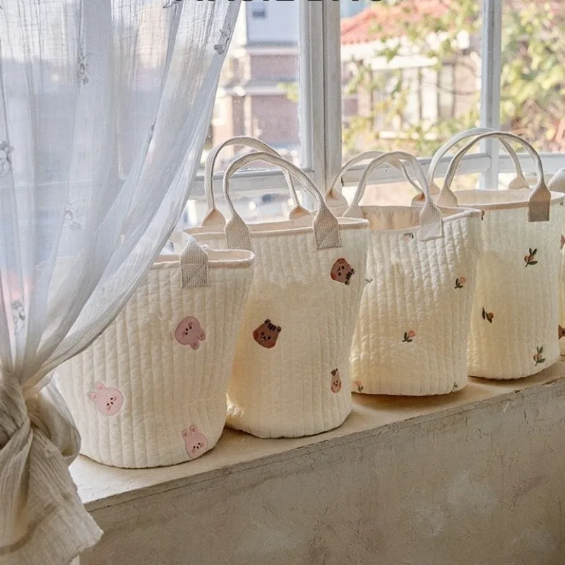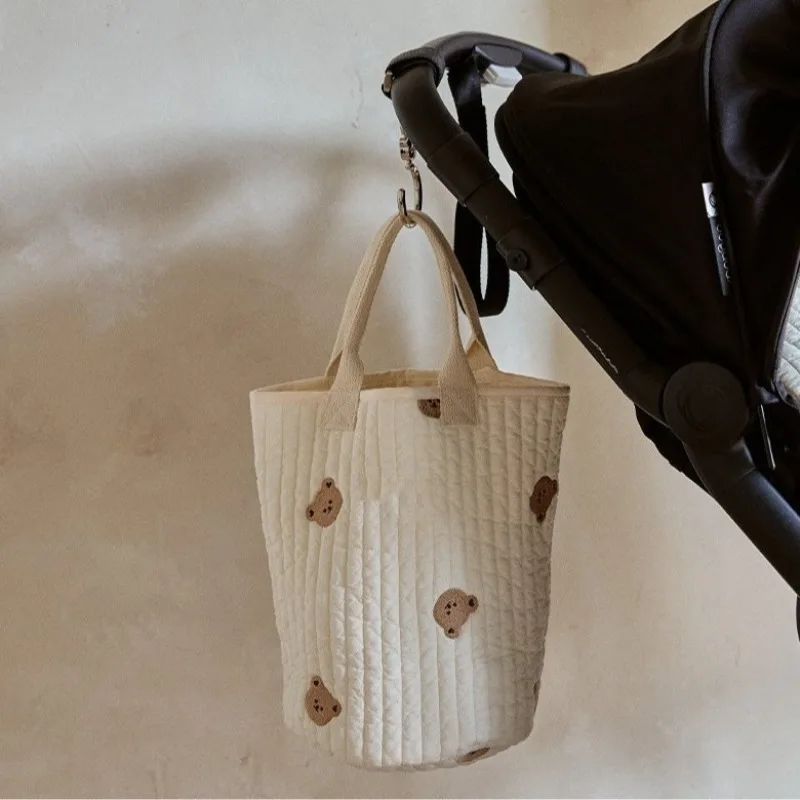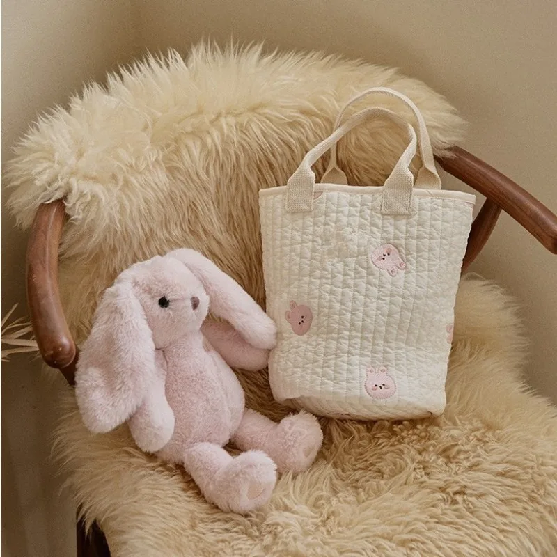 Ins moda coreana, bolsa de pañales para bebés, bordado, oso de dibujos animados, conejito, cochecito Floral, bolsa para botella de leche, bolso portátil para mujer