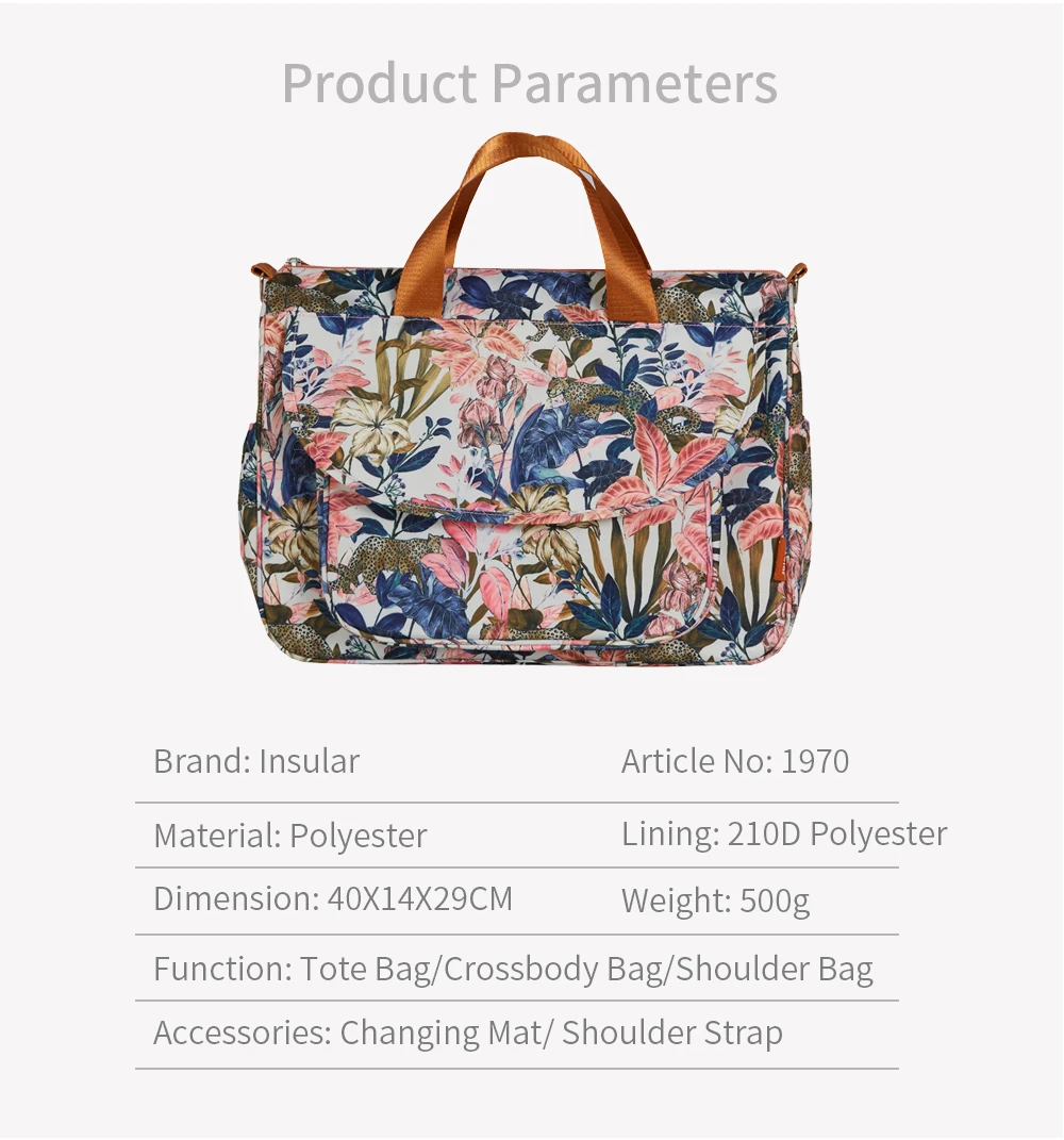 Insular-Bolsa de pañales de gran capacidad para cochecito de bebé, bolso de viaje de maternidad, impermeable, multifunción - imagen 5