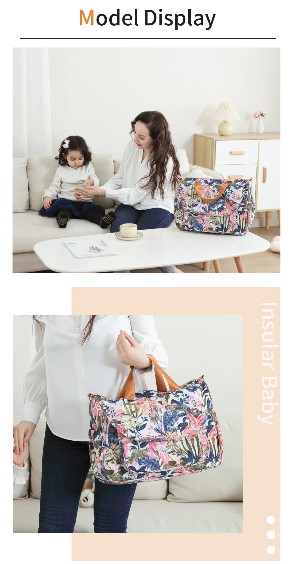 Insular-Bolsa de pañales de gran capacidad para cochecito de bebé, bolso de viaje de maternidad, impermeable, multifunción - imagen 3