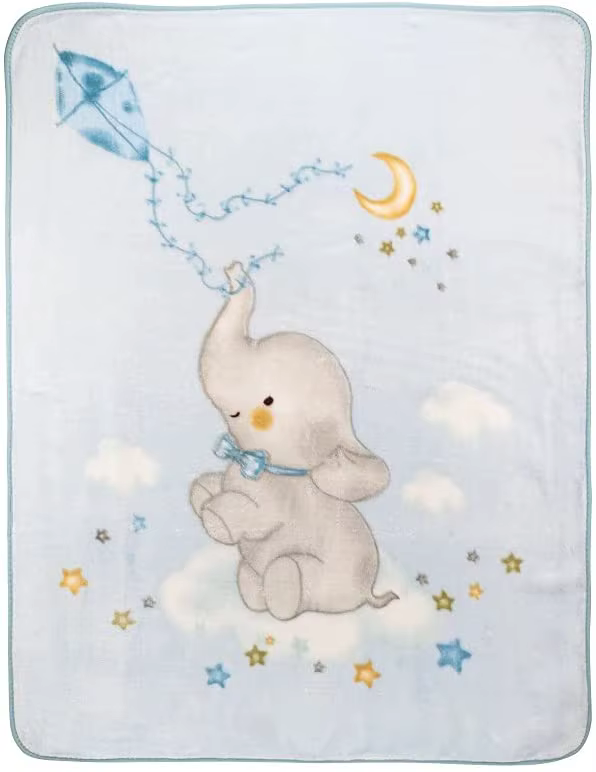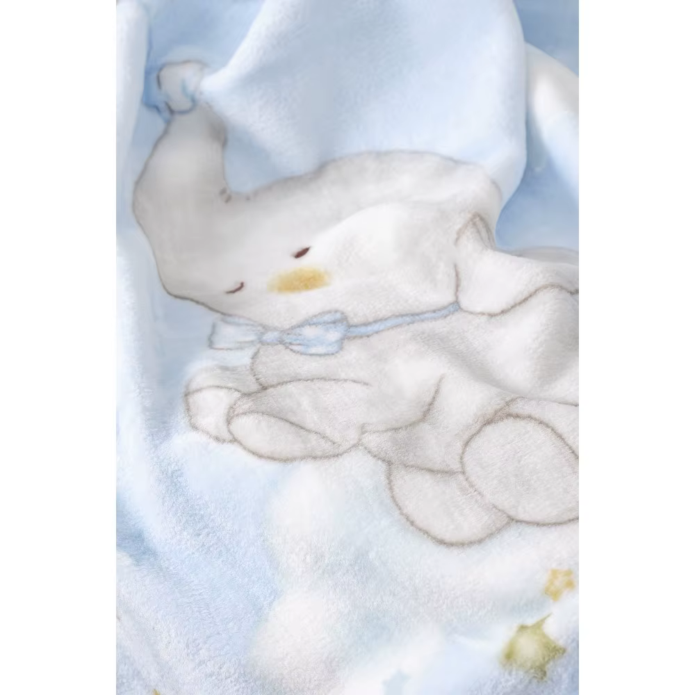 Manta para cuna de tamaño estándar con tacto de terciopelo de la colección Elefante en color azul.