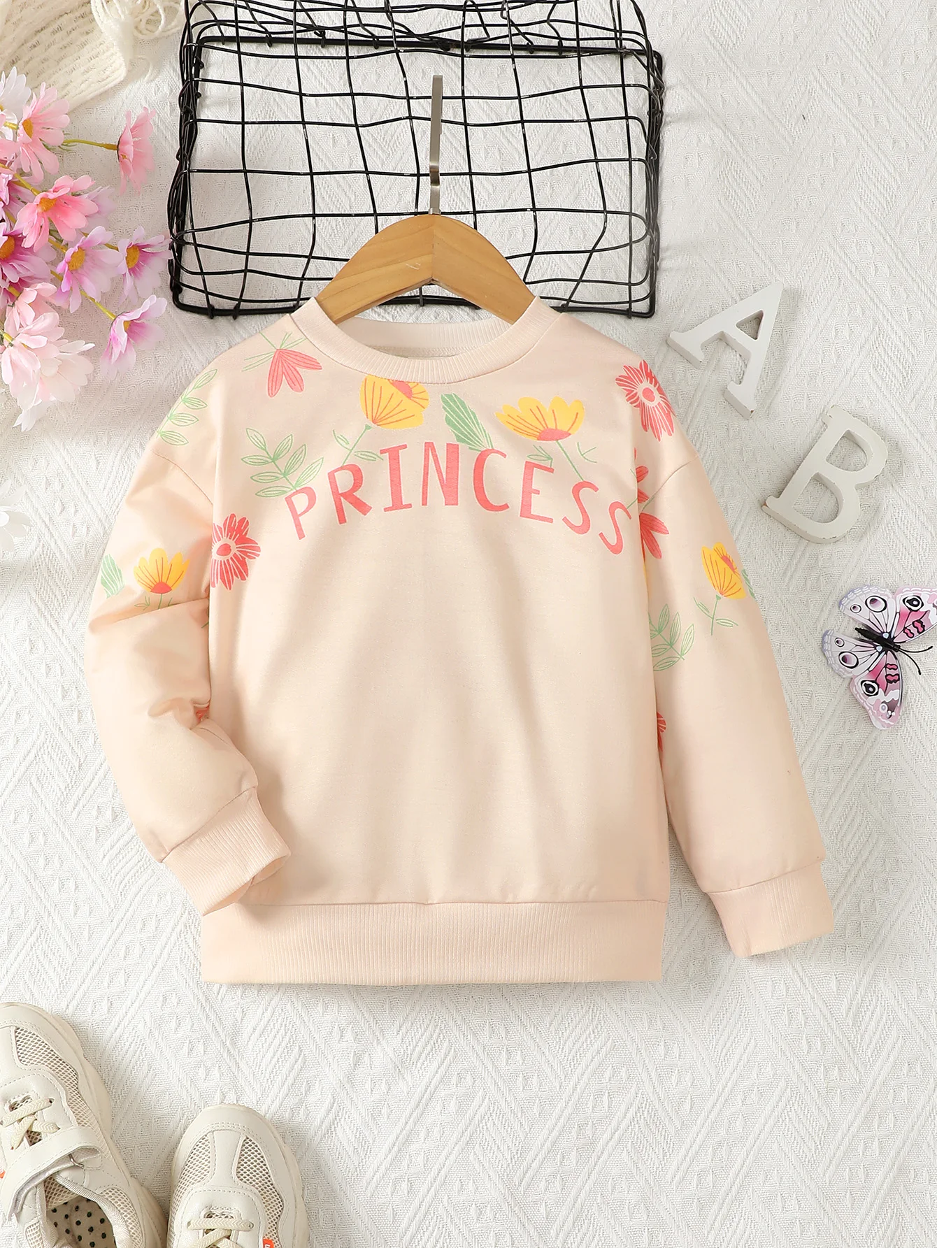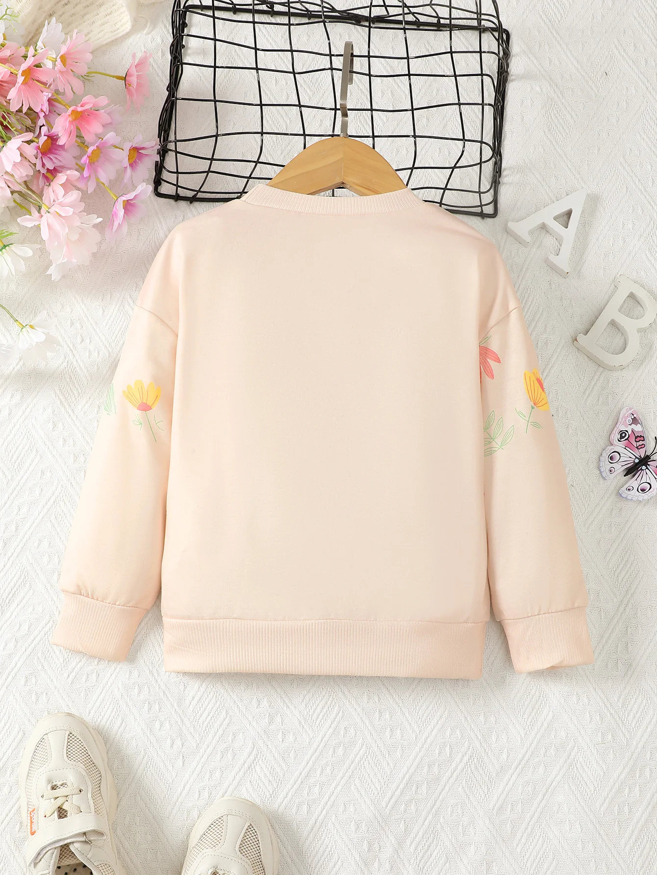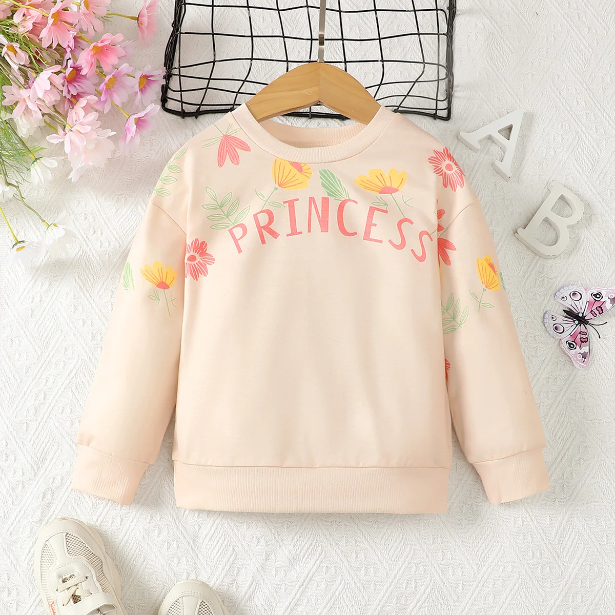 Jersey de manga larga para niñas de 4 a 7 años con Tops estampados con letras para primavera y otoño, disfraz, ropa de ocio para estudiantes