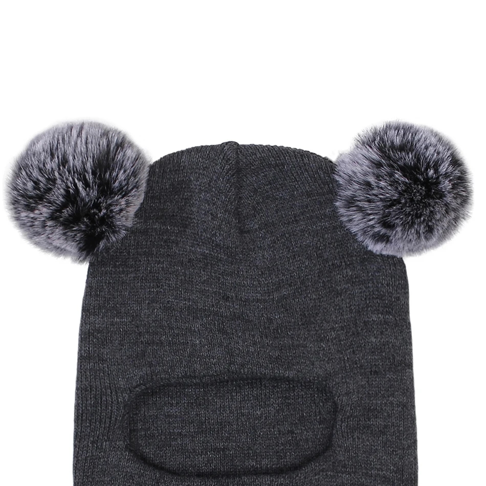 Nombre del vestido: Gorro de punto cálido para bebé unisex con pompones, orejeras térmicas, gorro de invierno bonito para niños y niñas, accesorio con capucha para niños