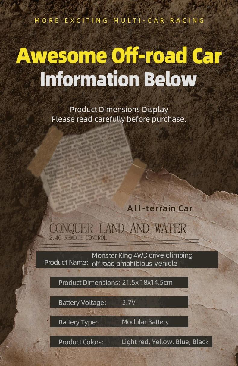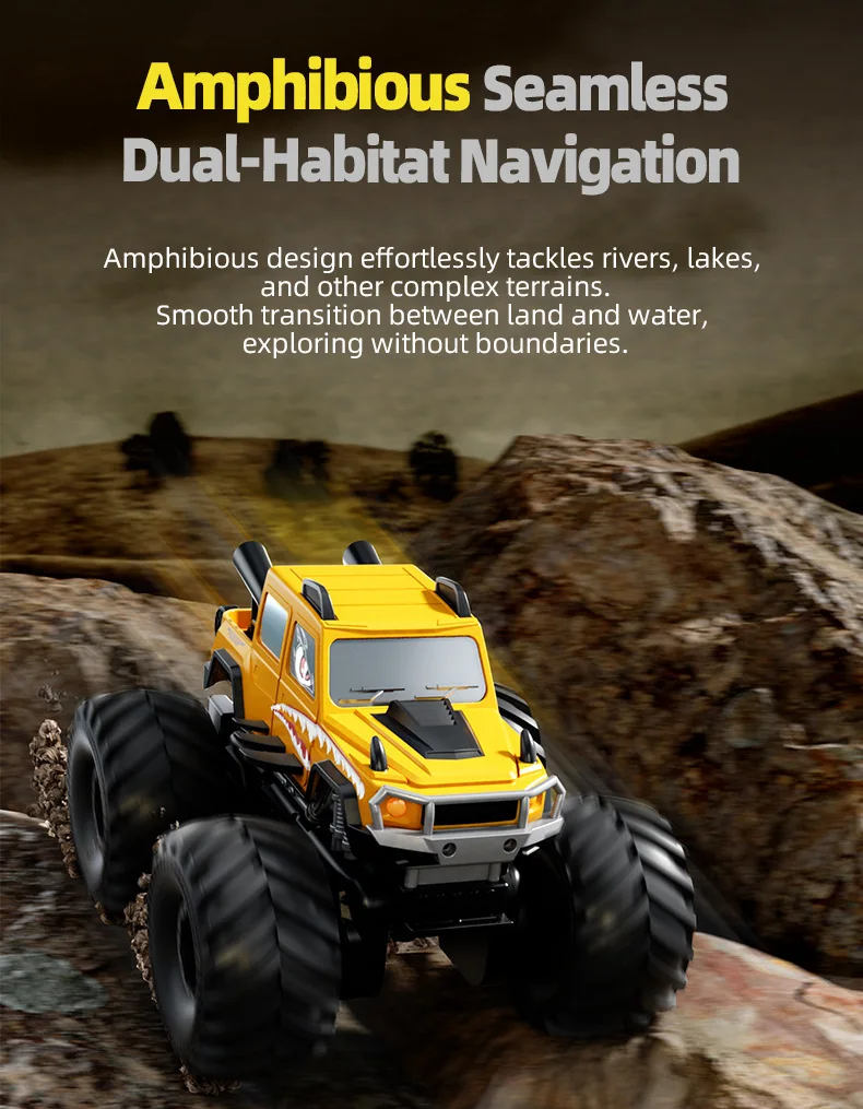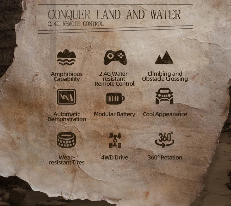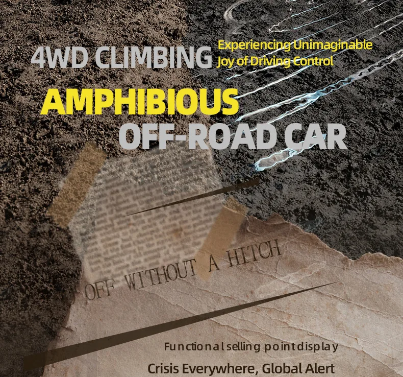 3.Modo dual de agua y tierra, modo tierra, modo agua; 4.El vehículo puede cambiar libremente el modo de alta velocidad/baja velocidad según la demanda