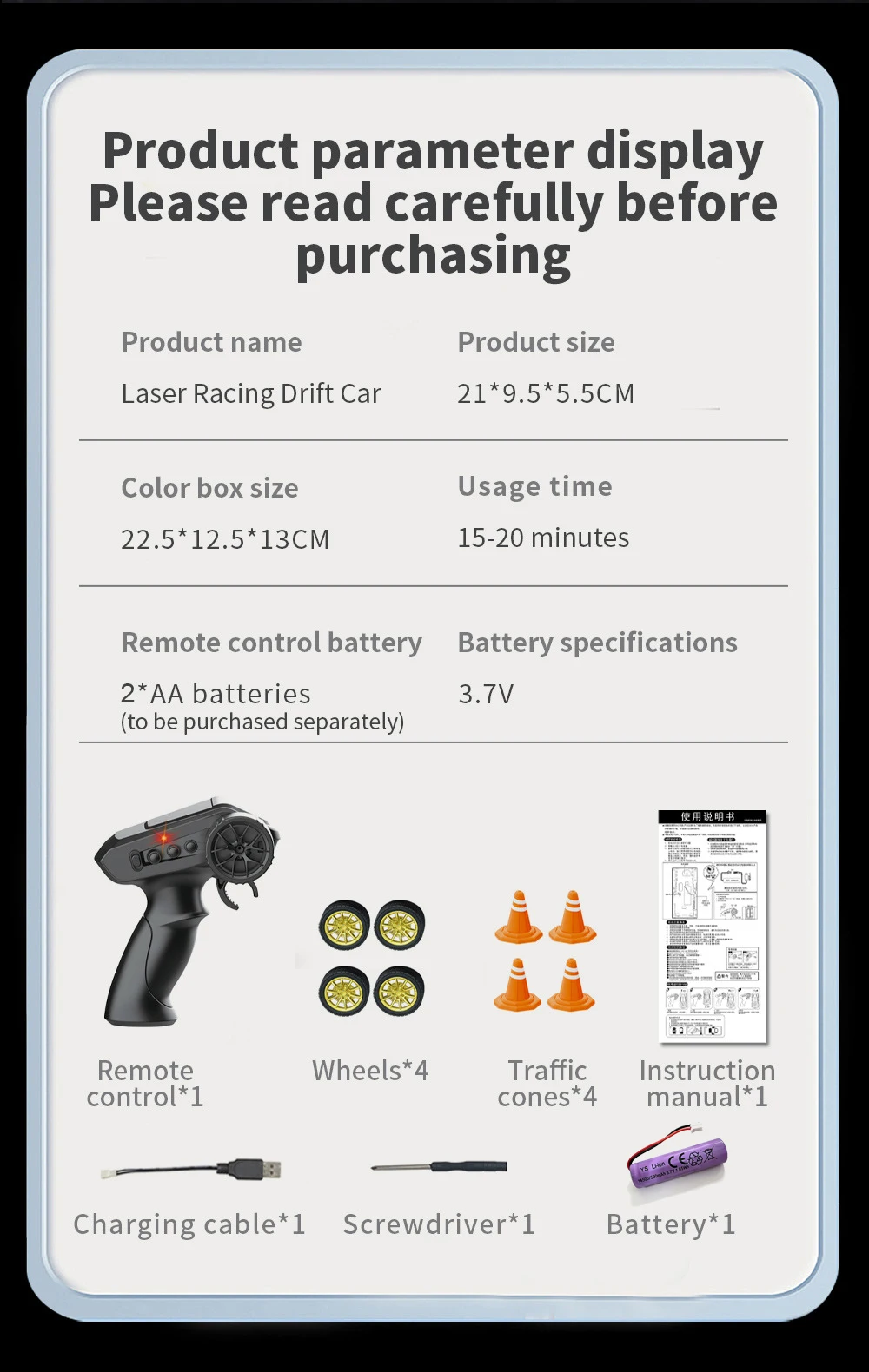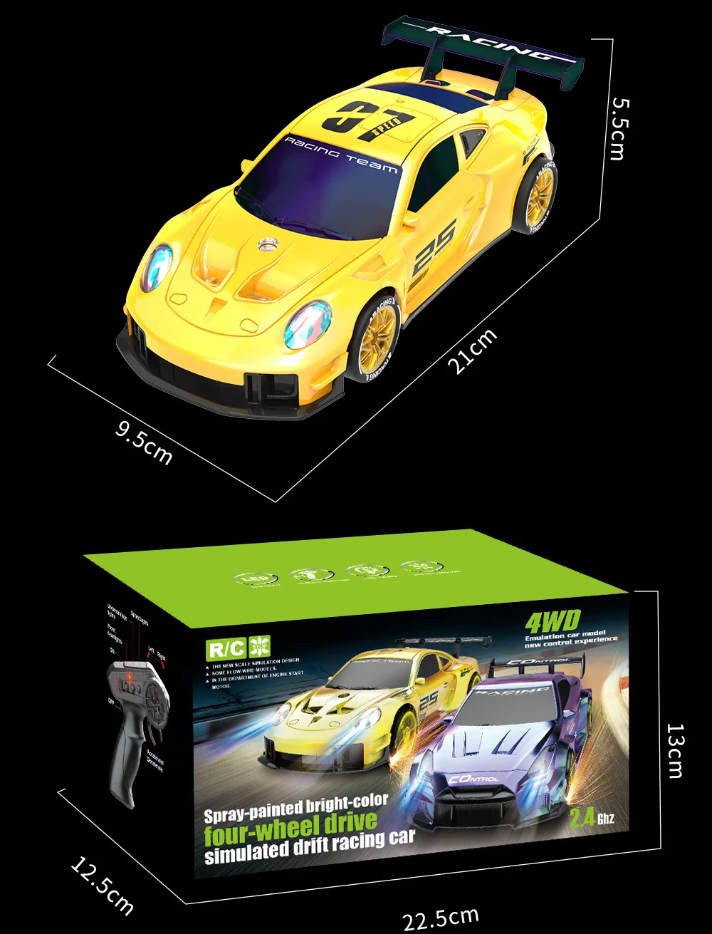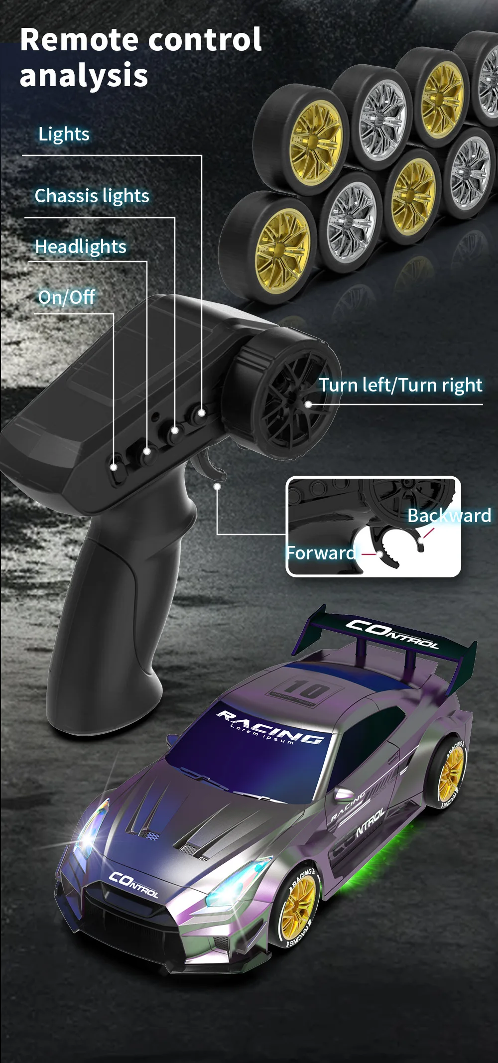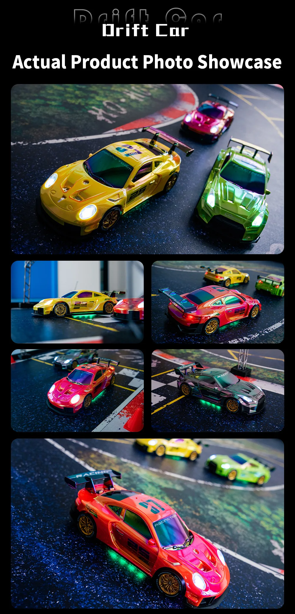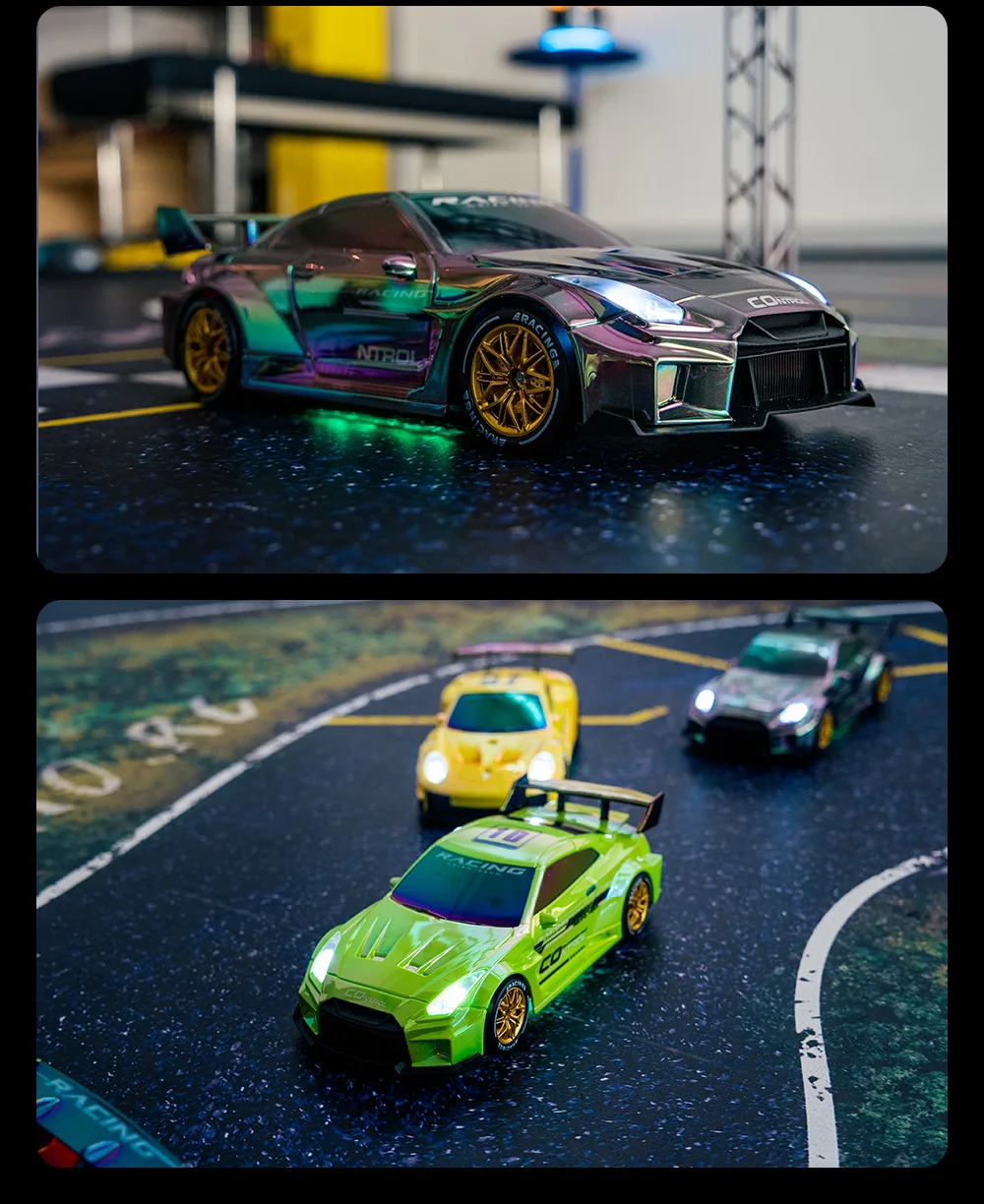 3.2.Control remoto de larga distancia 4G, un automóvil, una frecuencia, admite competencia multijugador.4.Aspecto de color brillante con spray UV.5. Vehículo con un diseño de iluminación genial.