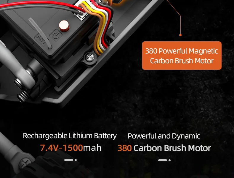 Estructura diferencial: diferencial de metal (engranaje planetario), motor RC380 cepillo de carbono de alta velocidad fuerte magnético (protección magnética + disipador de calor)