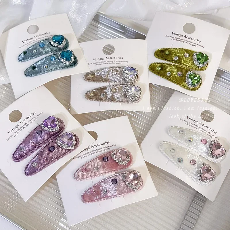 Comprar Juego de 2 pinzas para el pelo para niña, Clip lateral de terciopelo con diamantes de imitación, Y2K