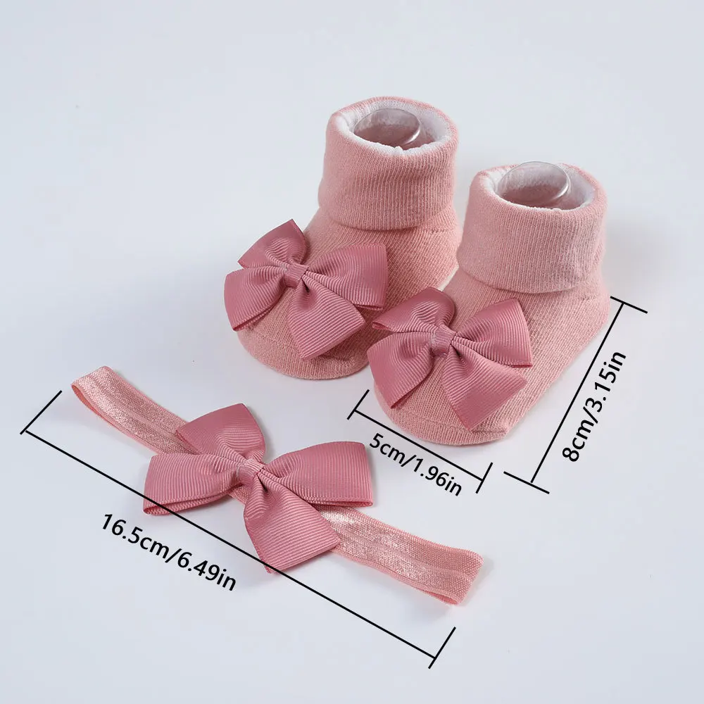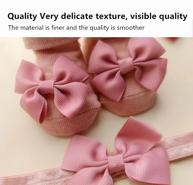 • Diseño lindo:El conjunto de diadema y calcetines presenta un lindo diseño de bowknot que hará que su bebé parezca una pequeña princesa.