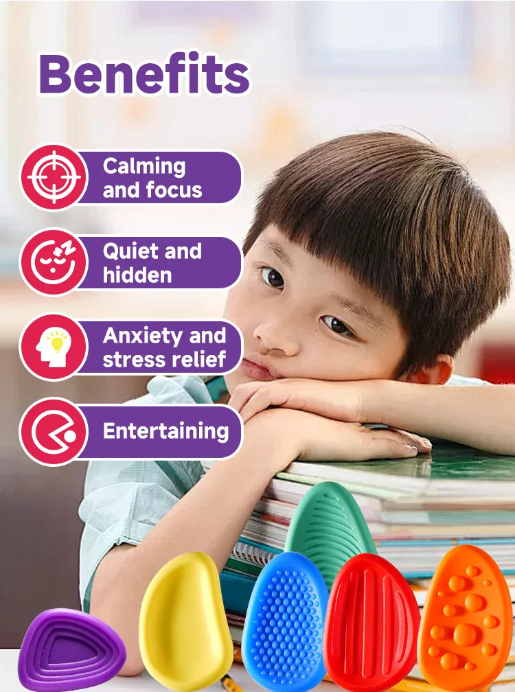 Juego de 3/6 Uds. De piedra de preocupación suave texturizada, juguete antiestrés relajante sin ruido, piedra sensorial para niños, rocas de preocupación texturizadas de silicona creativas