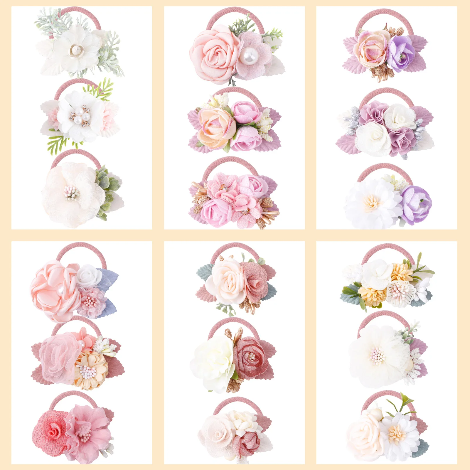 Comprar Juego de 3 piezas para el pelo de estilo princesa para niña, gomas para el pelo con flores, estilo fresco e idílico, superelásticas, novedad