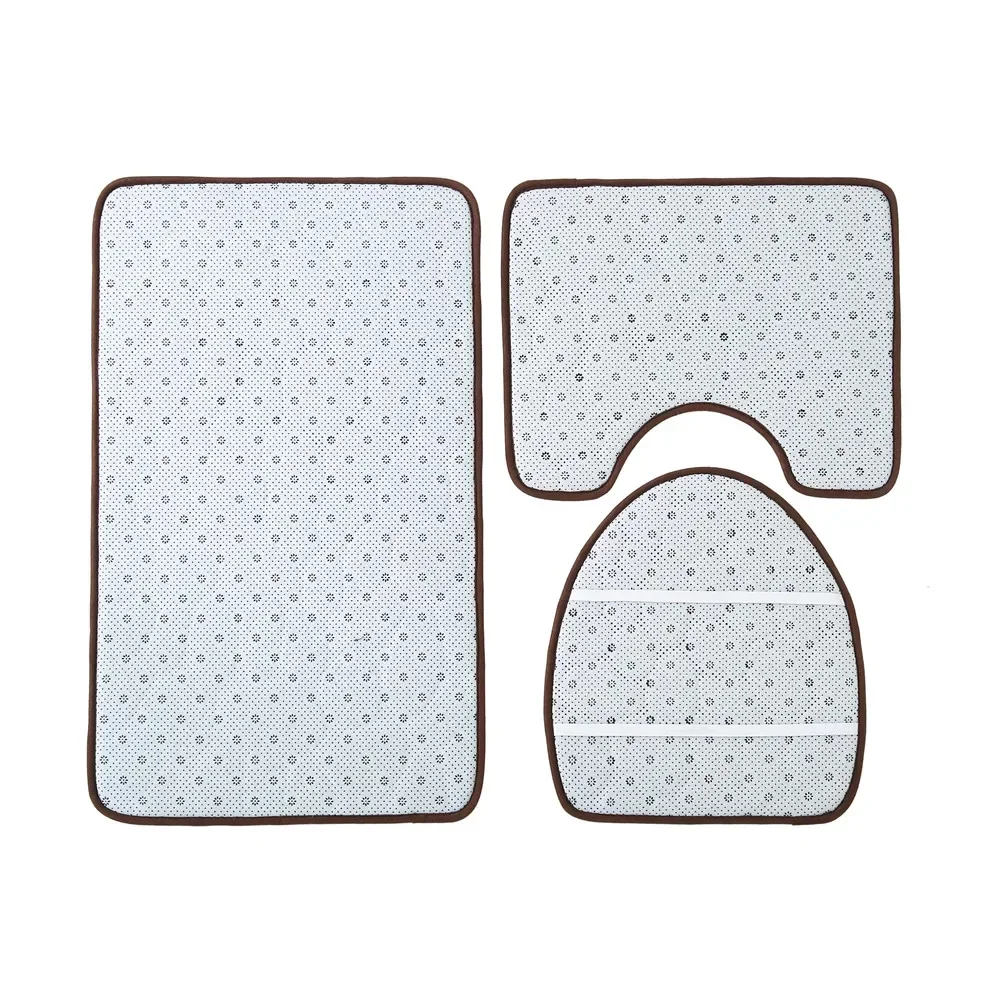 Juego de tres piezas (alfombrilla rectangular + tapete de inodoro en forma de U + funda para asiento de inodoro).