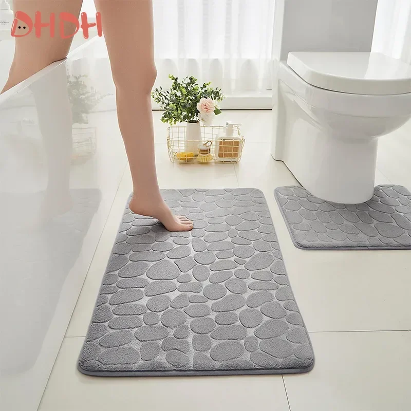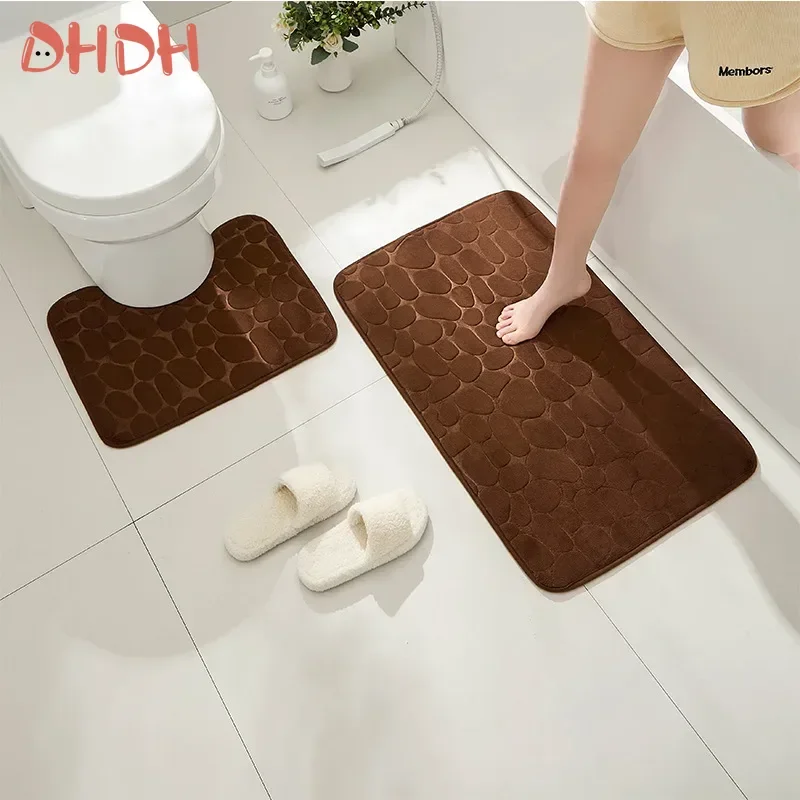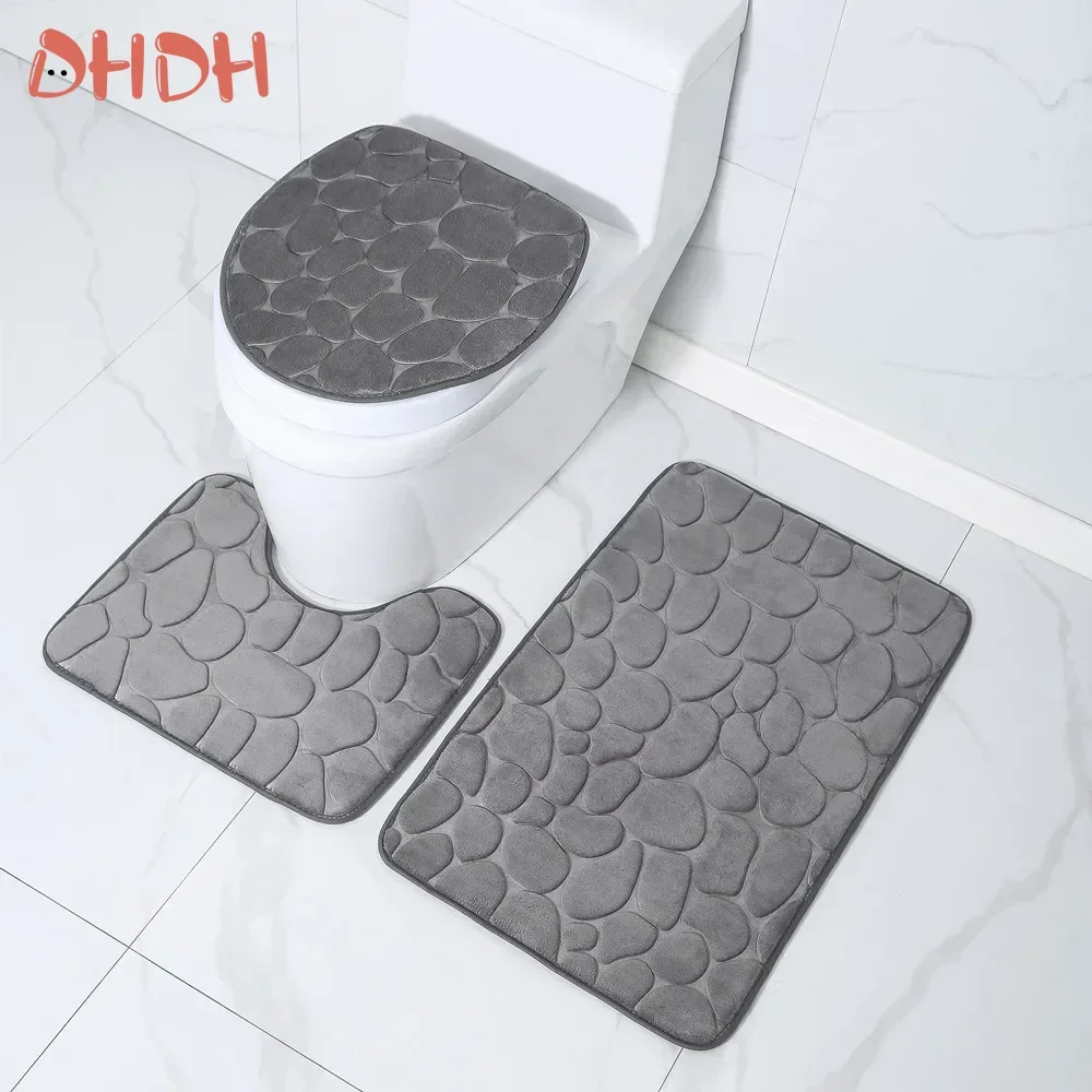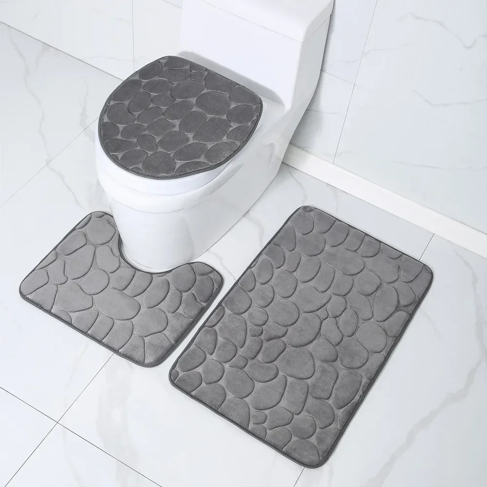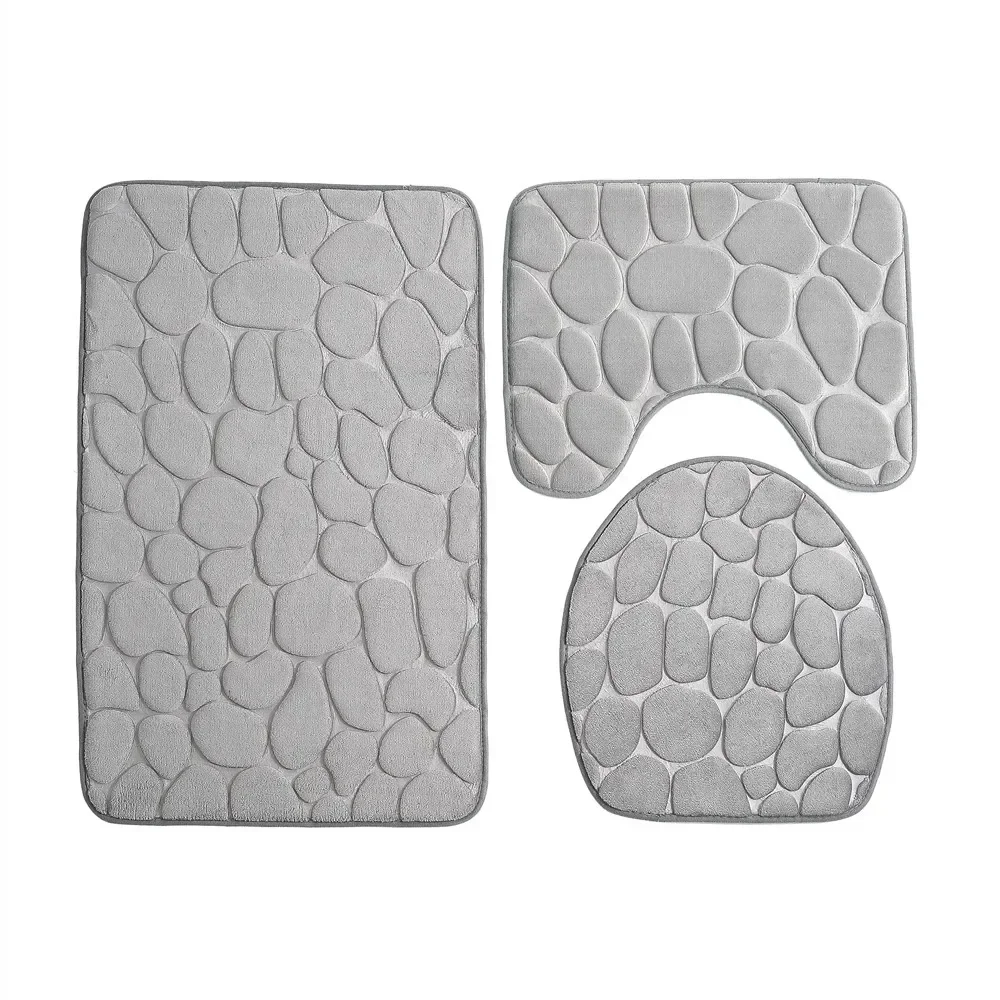 Comprar Juego de 3 uds de funda para asiento de inodoro, alfombrilla para baño, alfombra para el suelo de la ducha, felpudo absorbente antideslizante para el hogar y el baño, alfombra decorativa para bañera con guijarros