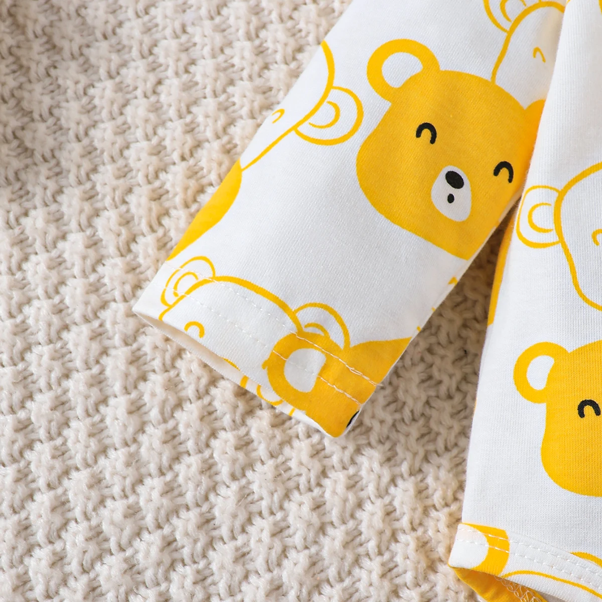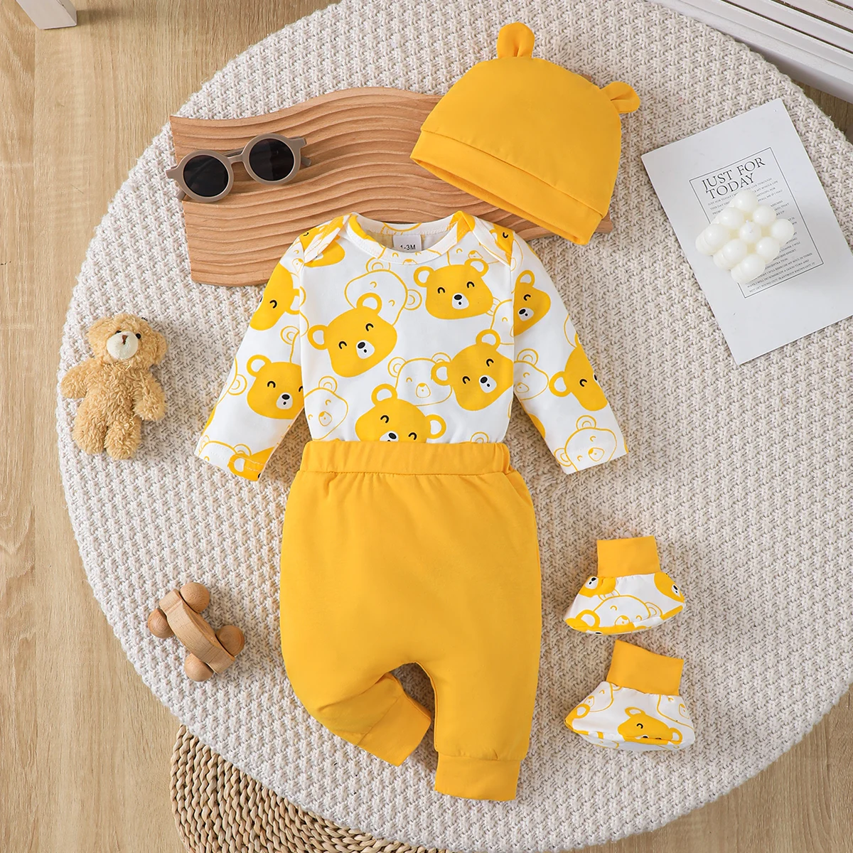 Juego de 4 piezas de oso para bebé recién nacido de 0 a 9 meses | Body de oso amarillo + sombrero + pantalones amarillos Conjunto de regalo para recién nacido Mono lindo y divertido