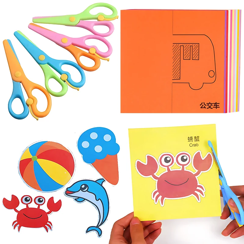 Comprar Juego de 48 hojas de tijeras para cortar papel, actividades hechas a mano, corte de papel de colores, manualidades DIY con tijeras seguras para niños, regalo de cumpleaños ZYF