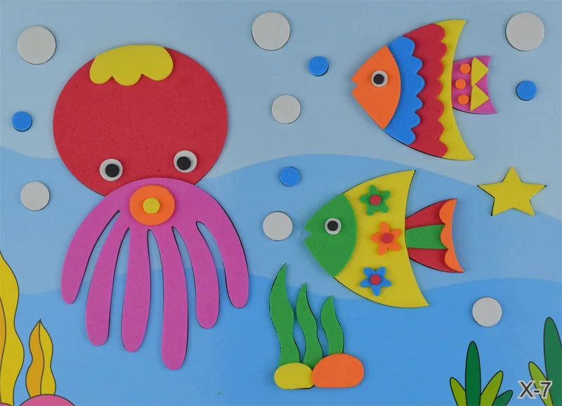 5 hojas/juego de papel EVA 3D para pegar, materiales hechos a mano para niños, juguetes artesanales DIY para niños, rompecabezas para bebés de jardín de infantes, pegatina ESTÉREO