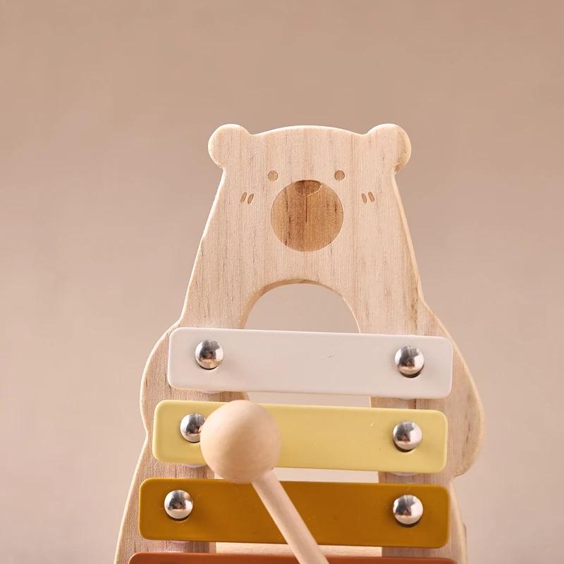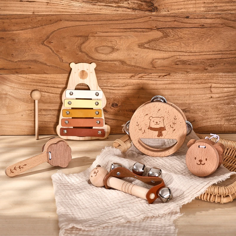 Comprar Juego de 5 piezas de juguetes Montessori, juguetes musicales para bebés, instrumentos musicales, juguetes educativos de madera para bebés de 0 a 3 años, juguetes de xilófono de oso, regalos