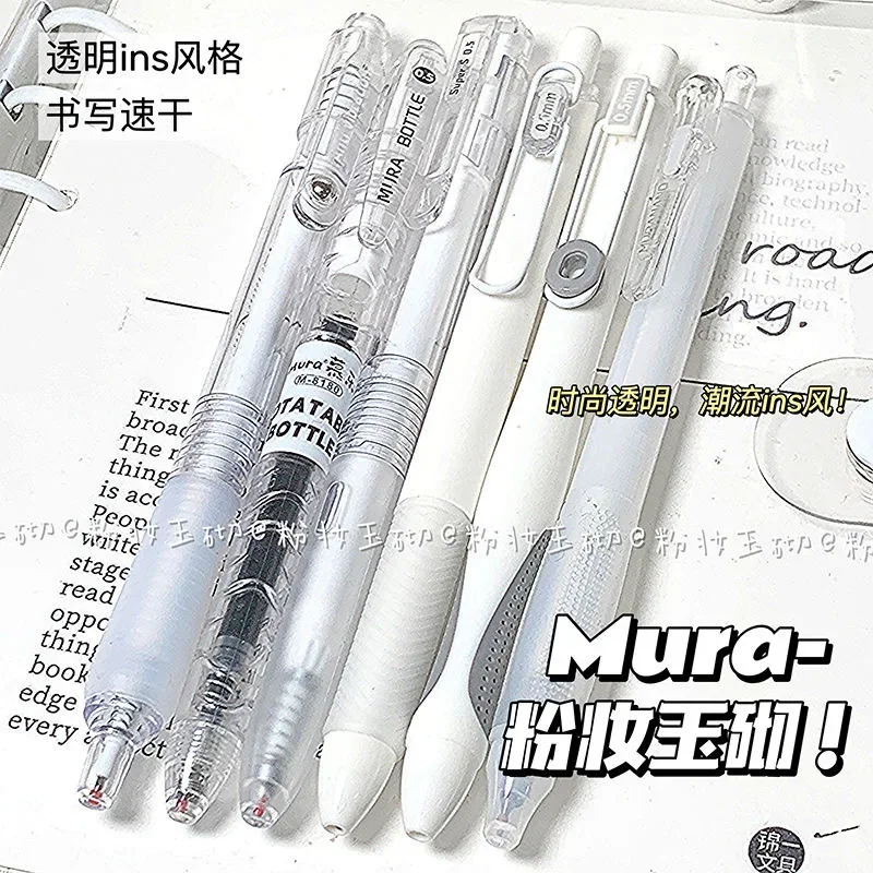 Juego de 6 bolígrafos de Gel de papelería, bolígrafo escolar de Color blanco y Beige, suave, de 0,5mm, para álbum de recortes de tinta negra, suministros para estudiantes