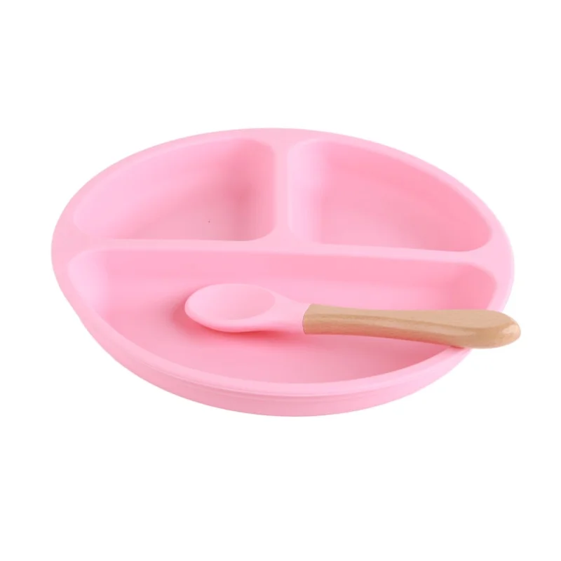 3.Plato dividido: Las tres partes del plato son muy adecuadas para proporcionar deliciosas recetas, gachas o verduras sin derramarse, ofreciendo a su bebé una dieta saludable.