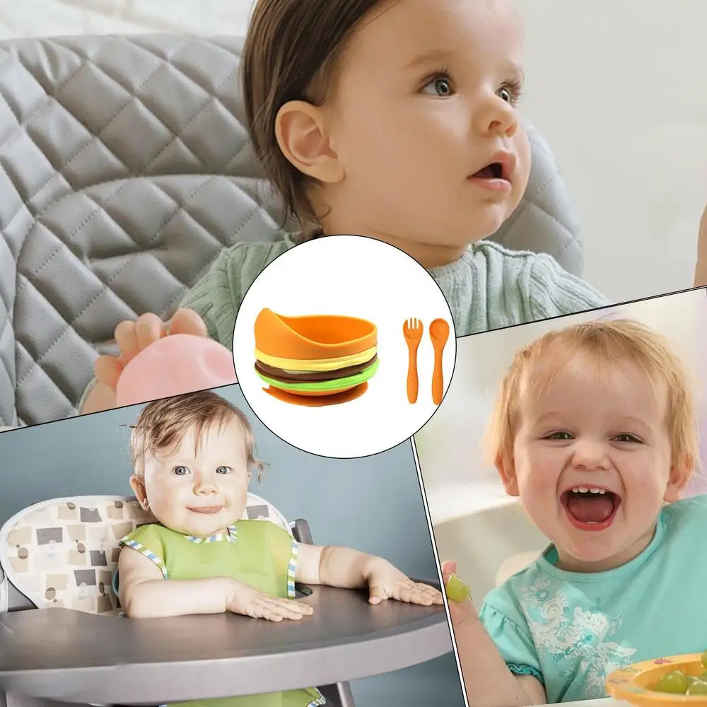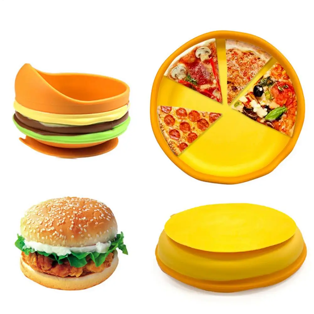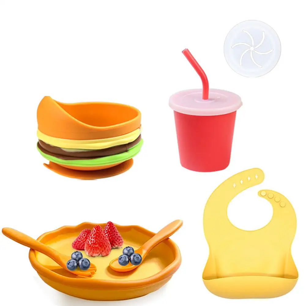 1. Tipo lindo: diseñado por expertos con una linda forma de pizza o hamburguesa, lo que garantiza una fuerte atracción, este juego de alimentación de bebé de silicona hace que la hora de comer sea placentera y organizada.