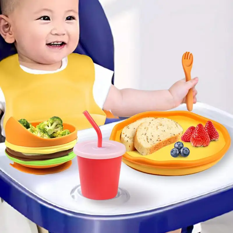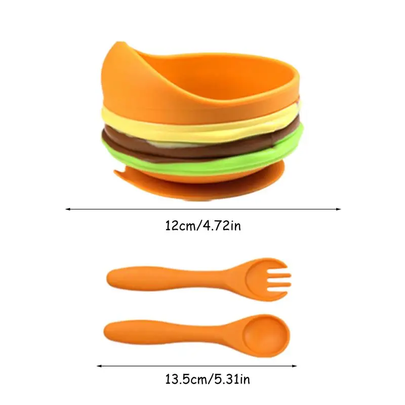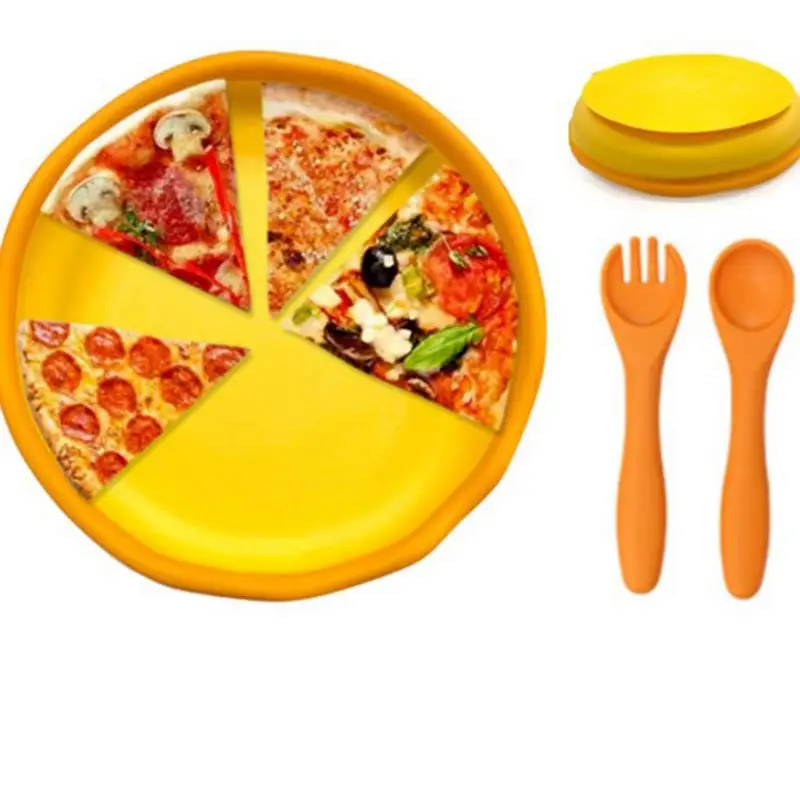 1. Tipo lindo: diseñado por expertos con una linda forma de pizza o hamburguesa, lo que garantiza una fuerte atracción, este juego de alimentación de bebé de silicona hace que la hora de comer sea placentera y organizada.