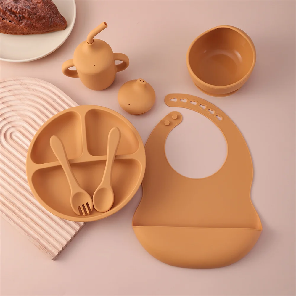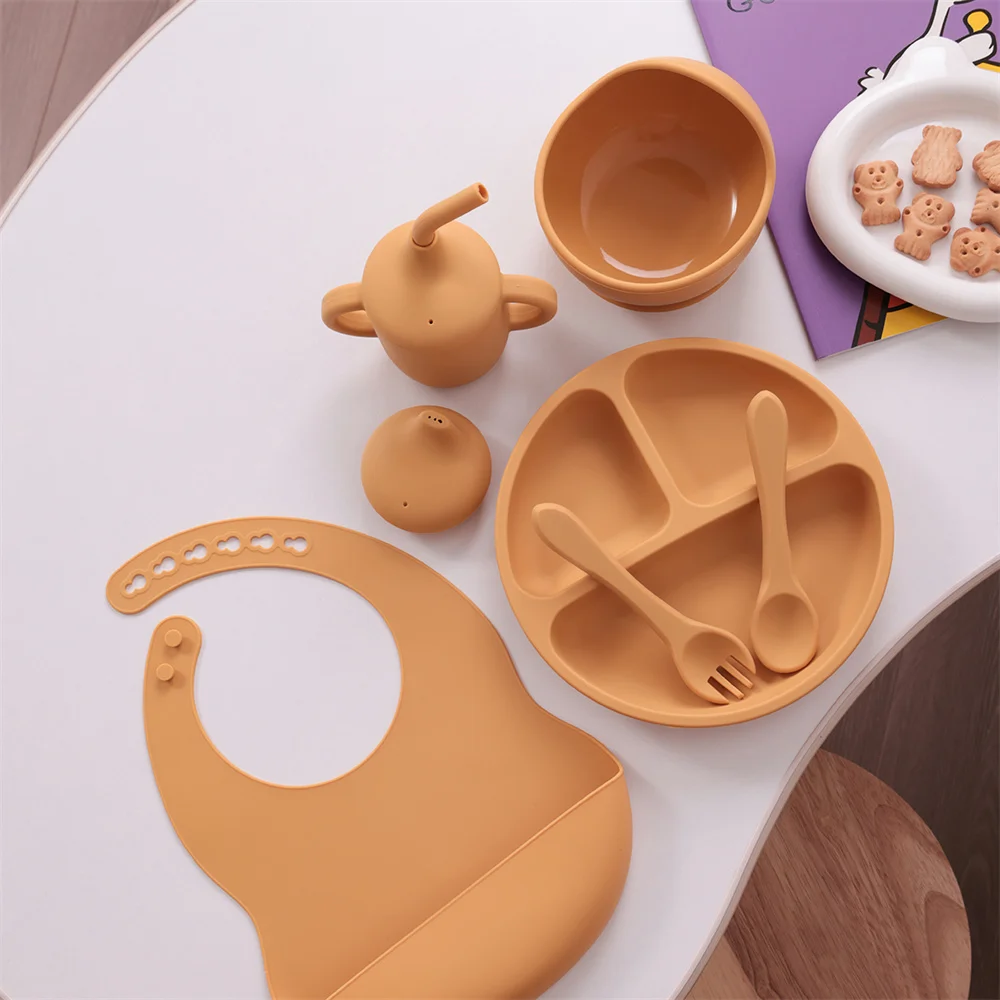 Juego de alimentación de silicona para niños, 6 uds., platos divididos, taza para sorber, entrenamiento, cubiertos para comer, cuenco de succión fuerte, juego de vajilla sin BPA