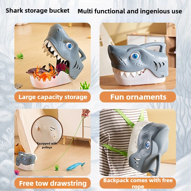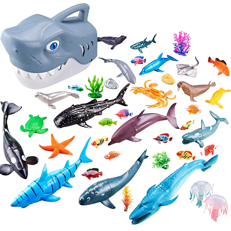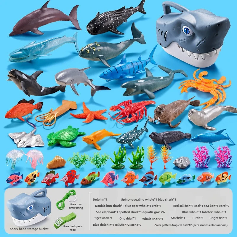 Juego de animales marinos, modelos de vida en el océano, modelo de Animal marino simulado para niños, caja de almacenamiento con cabeza de tiburón de dibujos animados, juego de juguetes