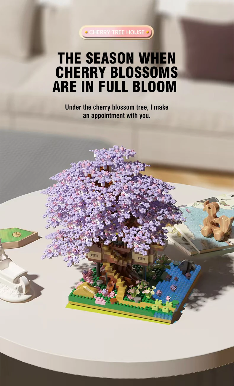 Comprar Juego de bloques de construcción de árbol de flores, montaje de ladrillos DIY, casa en el árbol, modelo clásico, adorno romántico para novia, Navidad