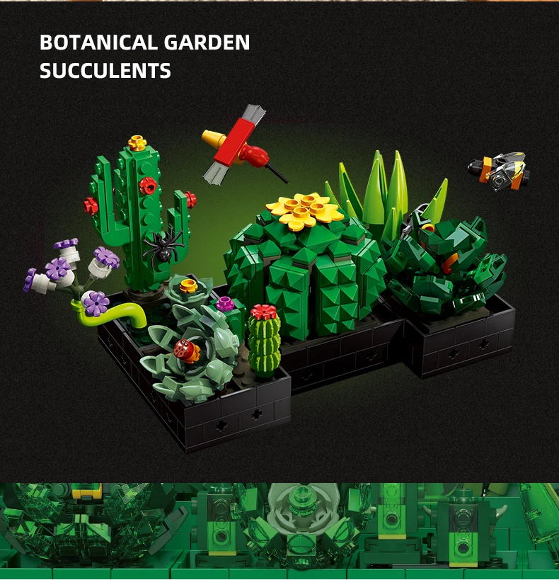 1. Encantadores bloques de construcción en macetas de plantas suculentas: este juego incluye 590 bloques de construcción que se pueden ensamblar en un encantador modelo en macetas de plantas suculentas.Los bloques están diseñados para parecerse a varios tipos de plantas suculentas, añadiendo un toque de naturaleza a cualquier espacio.