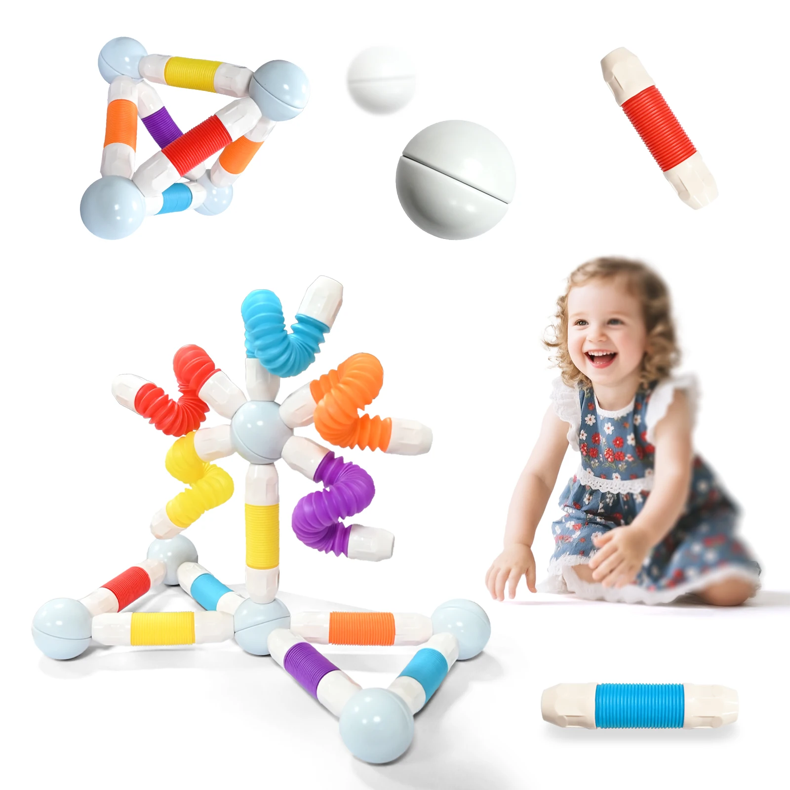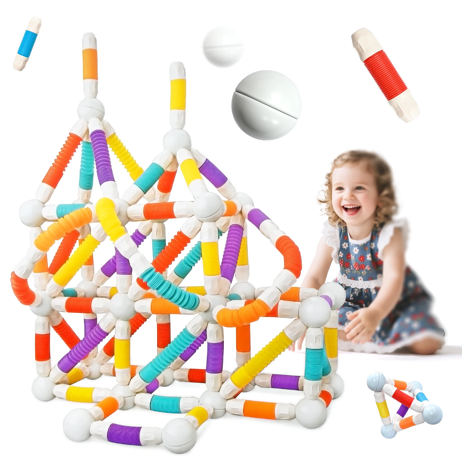 Juego de bloques de construcción magnéticos, juguete para niños, varilla magnética, bloques de construcción, tubos pop, alivio del estrés, juguete educativo Montessori