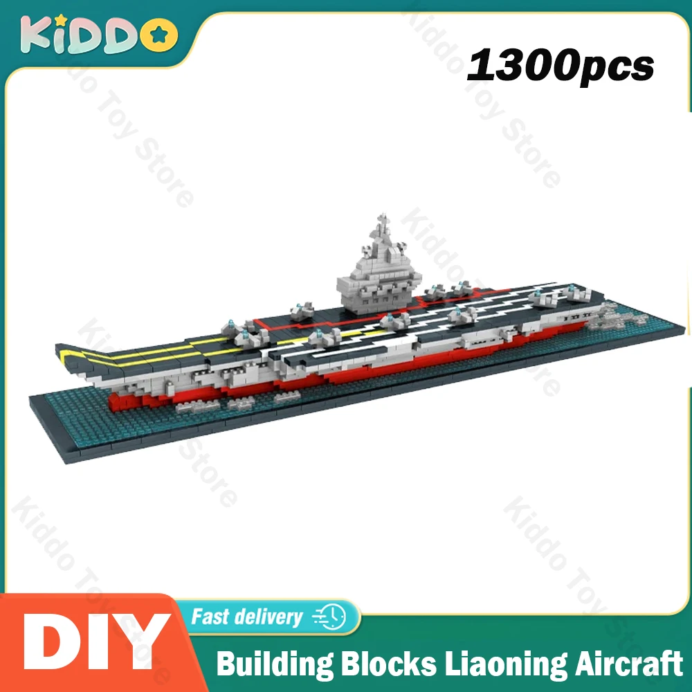 Comprar Juego de bloques de construcción de micropartículas para niños, barco militar moderno de Liaoning, 1300 piezas, ensamblaje de aviones, juguetes de colección, regalos de navidad