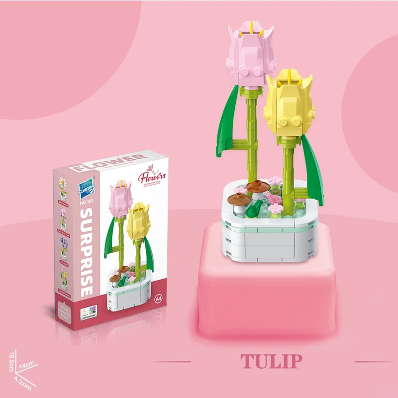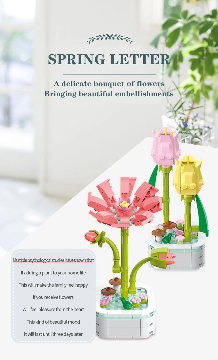 Comprar Juego de bloques de construcción de ramo de flores para niñas, planta en maceta, juguetes de ladrillos, girasol, rosa, tulipán, simulación de flores, adorno de escritorio, regalos románticos
