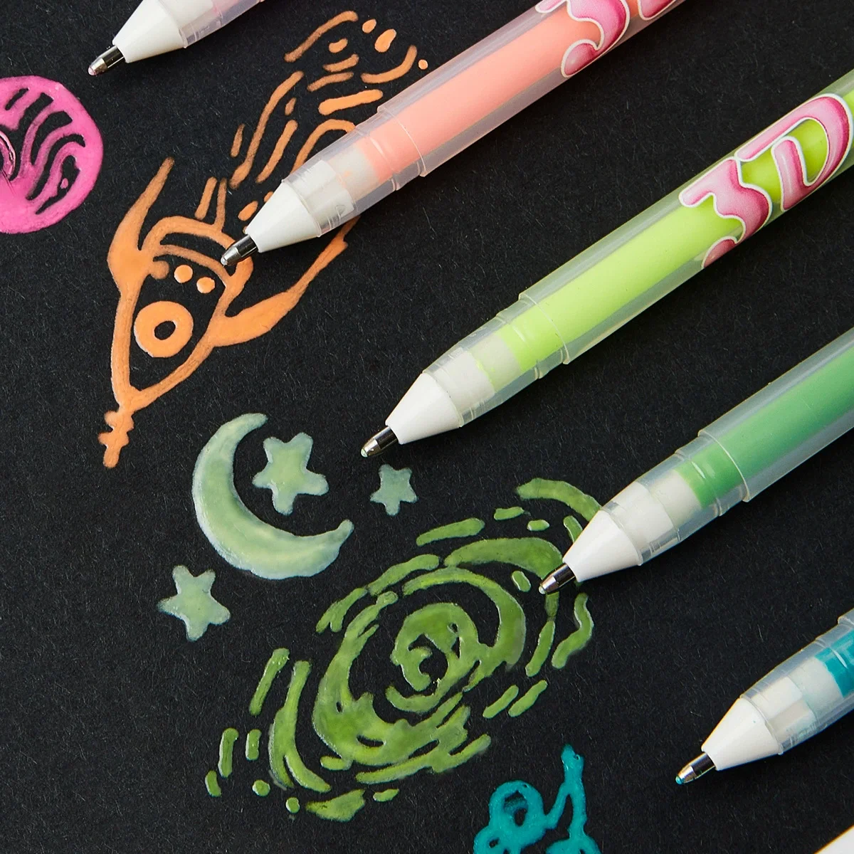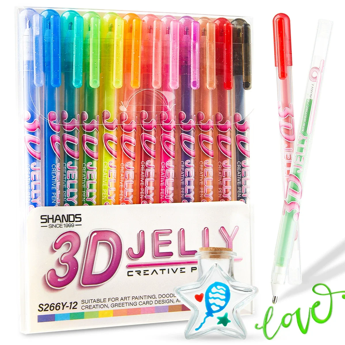 Juego de bolígrafos de gelatina 3D, bolígrafos de gelatina brillantes 3D de 12 colores, bolígrafos de tinta de gel de colores surtidos para pintura, dibujo, colorear, manualidades, álbumes de recortes, fabricación de tarjetas de diario, álbumes de fotos, dibujo, escritura