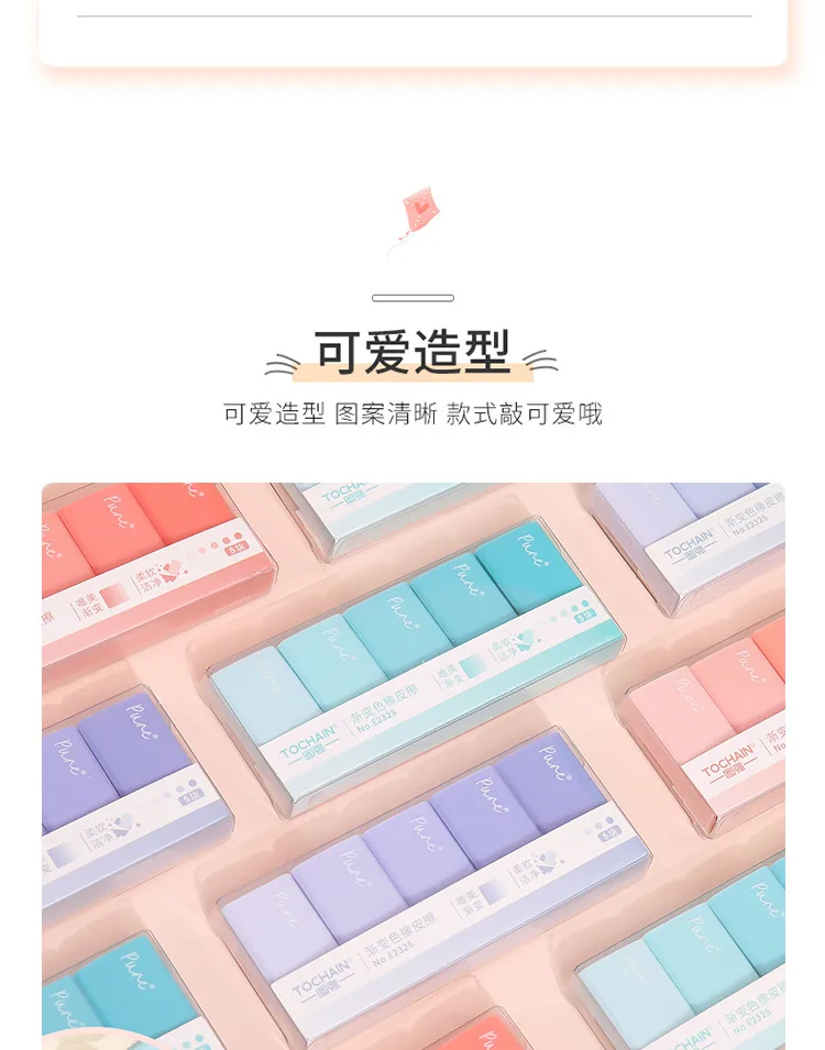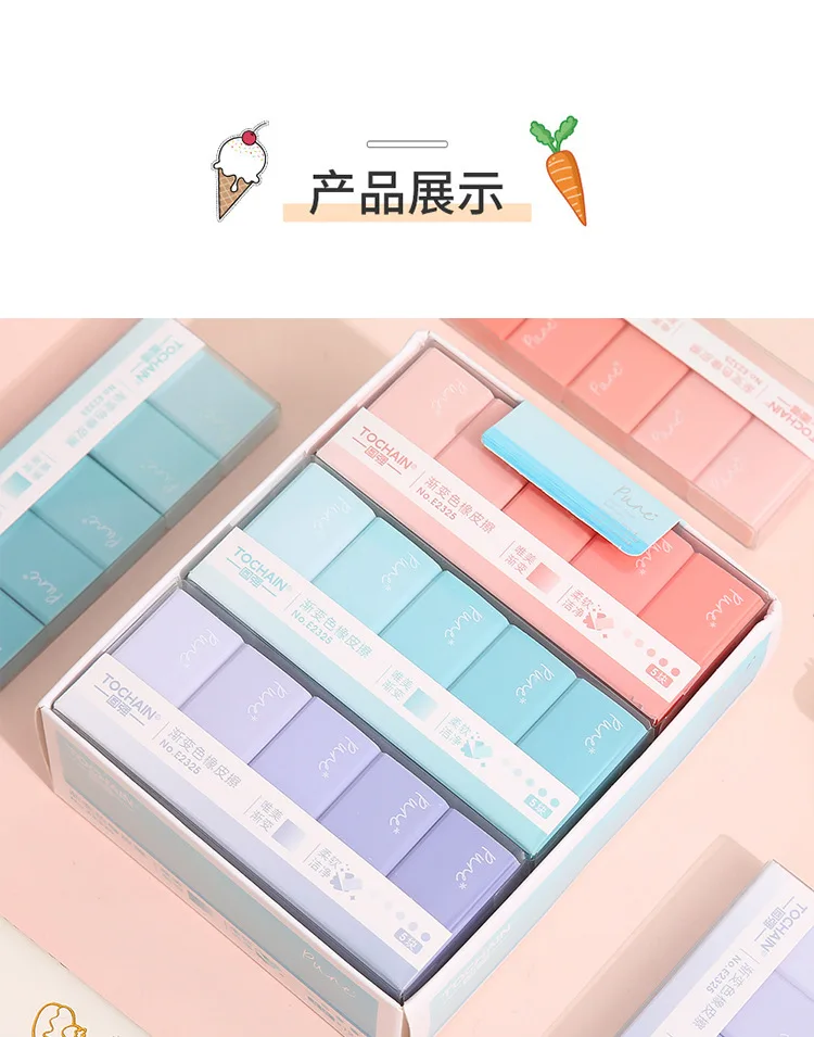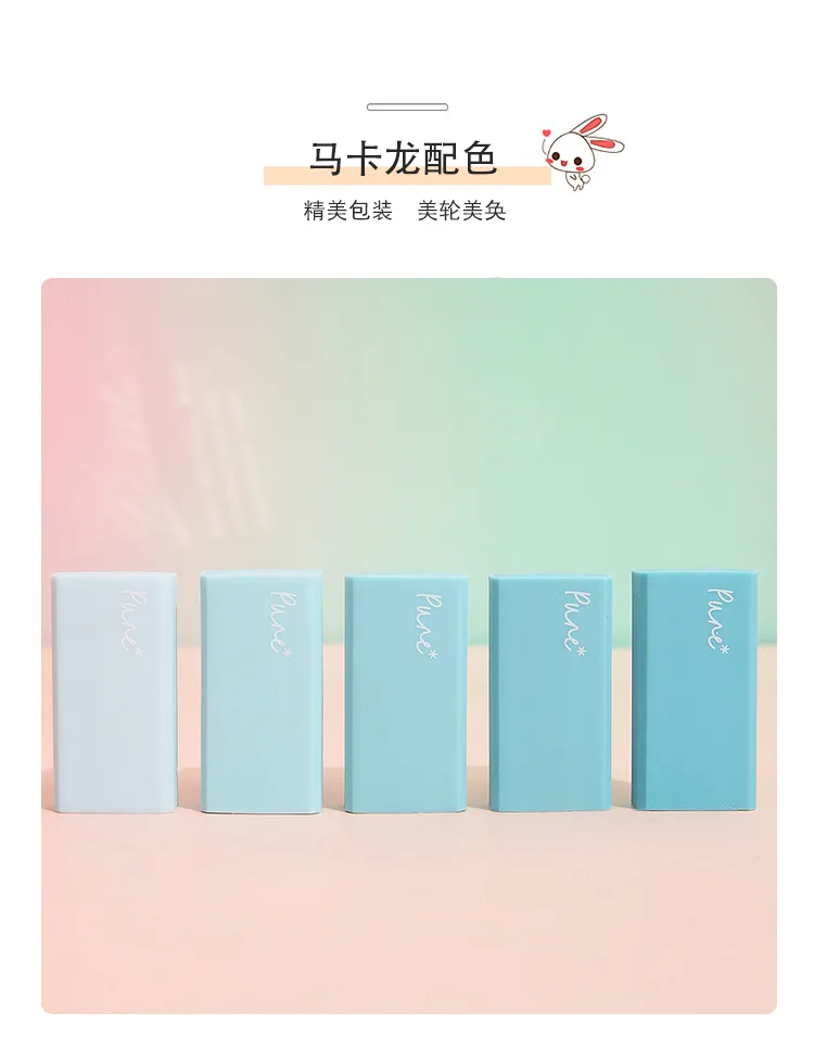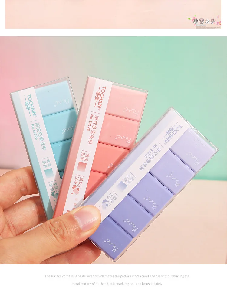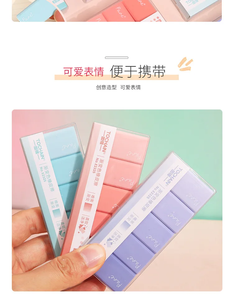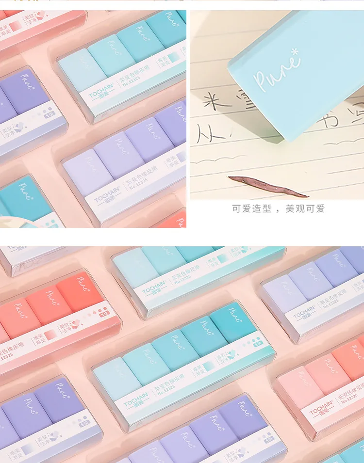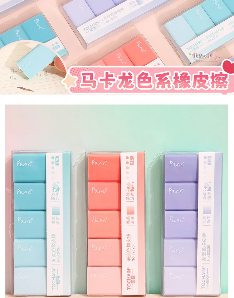Juego de borradores de colores degradados puros, 5 uds., menos polvo para limpieza de lápices, papelería, examen escolar