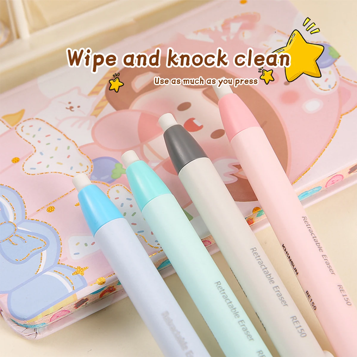 Juego de borradores de prensa automática, borrador de arte pushable, herramientas de corrección Kawaii, papelería coreana, suministros escolares y de oficina