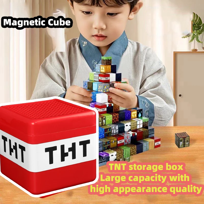 Juego de caja de almacenamiento de juguetes de bloques de construcción magnéticos, juguetes de montaje DIY para niños, juguetes educativos, modelo de bloques de construcción, regalo de Navidad