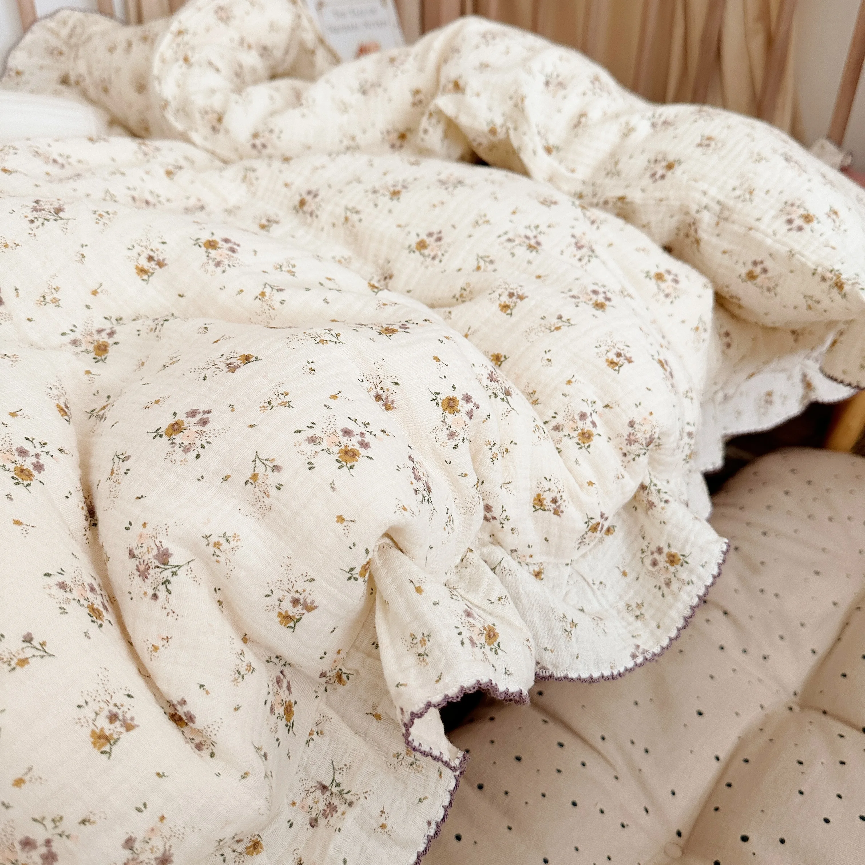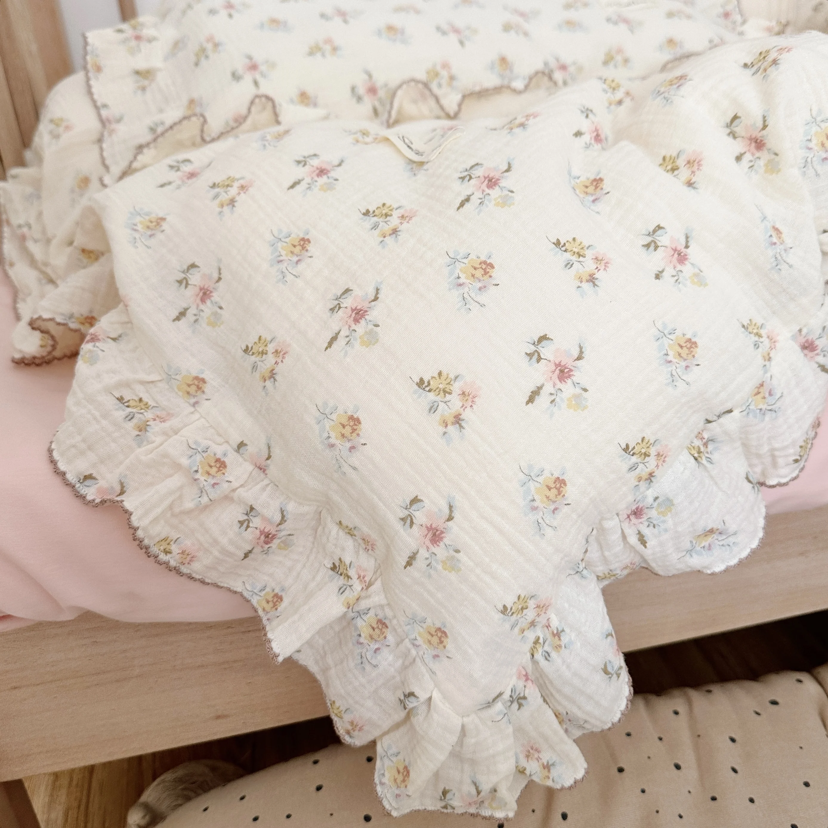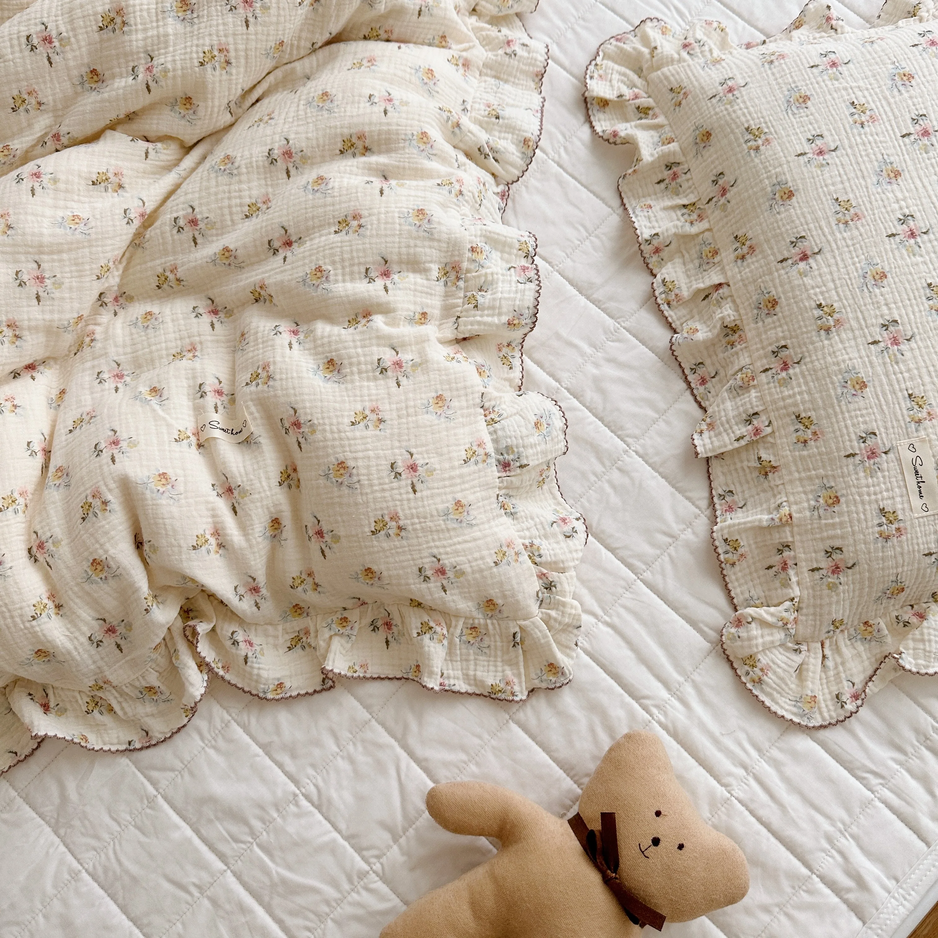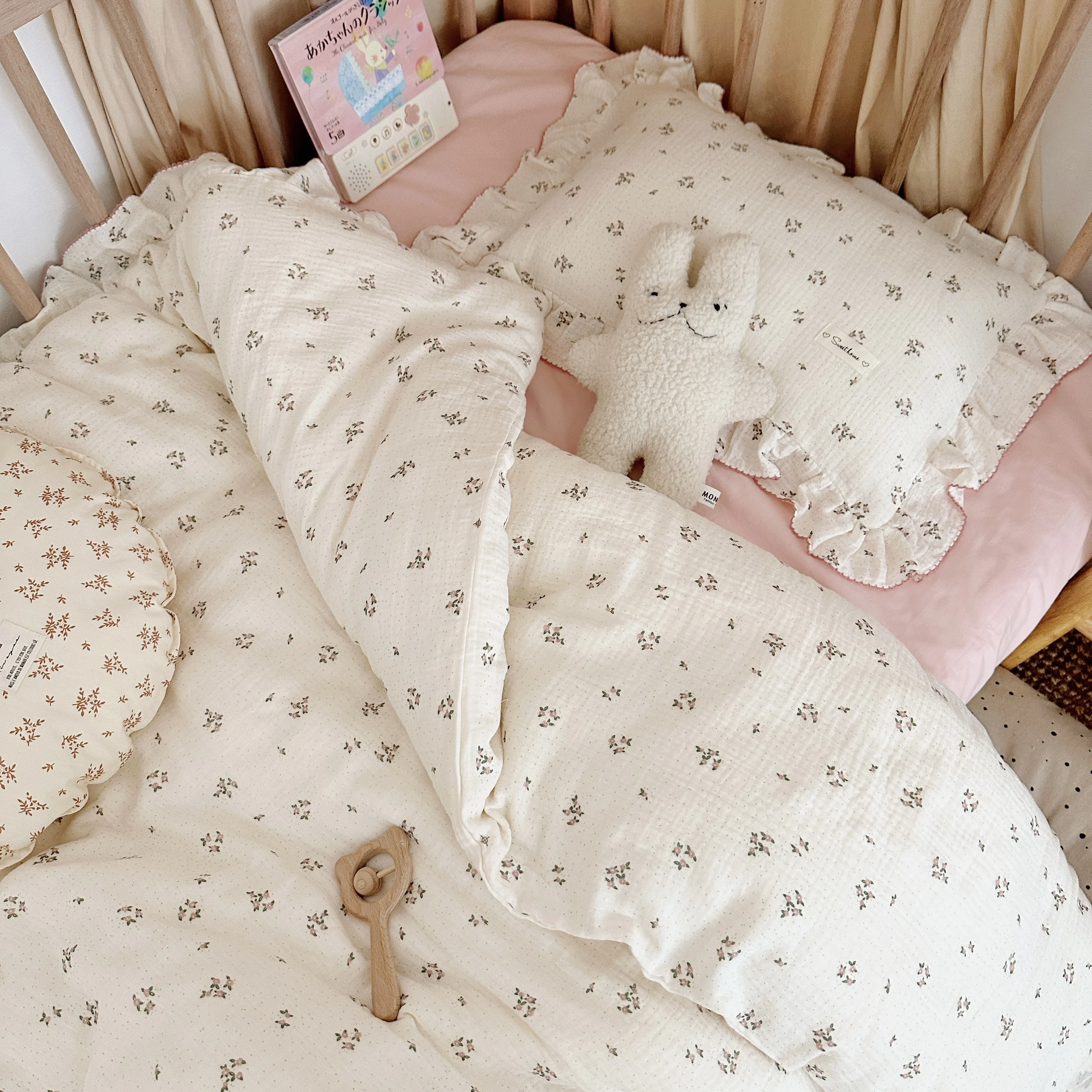 Conjunto de cama de cuna de algodón y muselina Floral Vintage para niños, funda nórdica de lino para cama, funda de almohada sin relleno