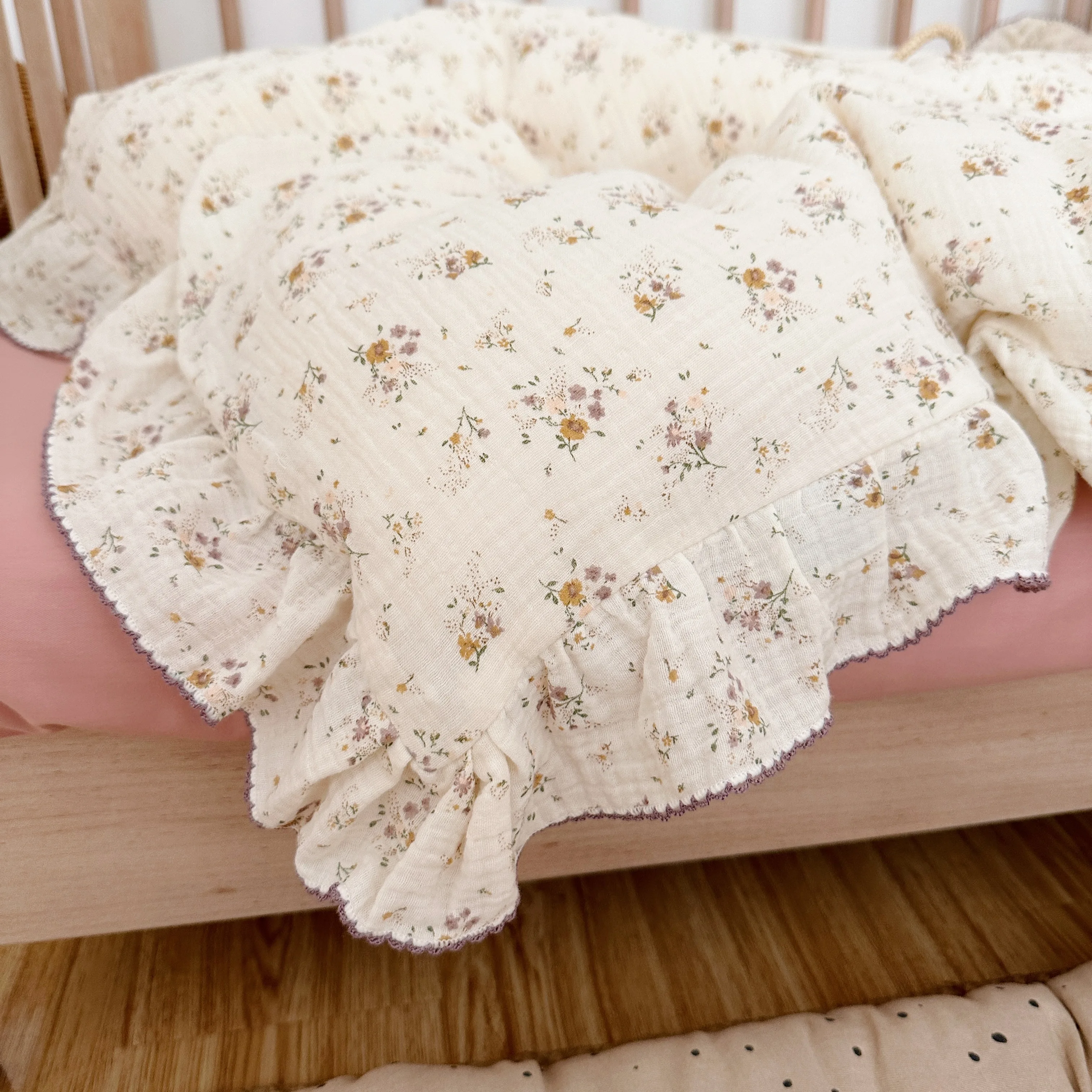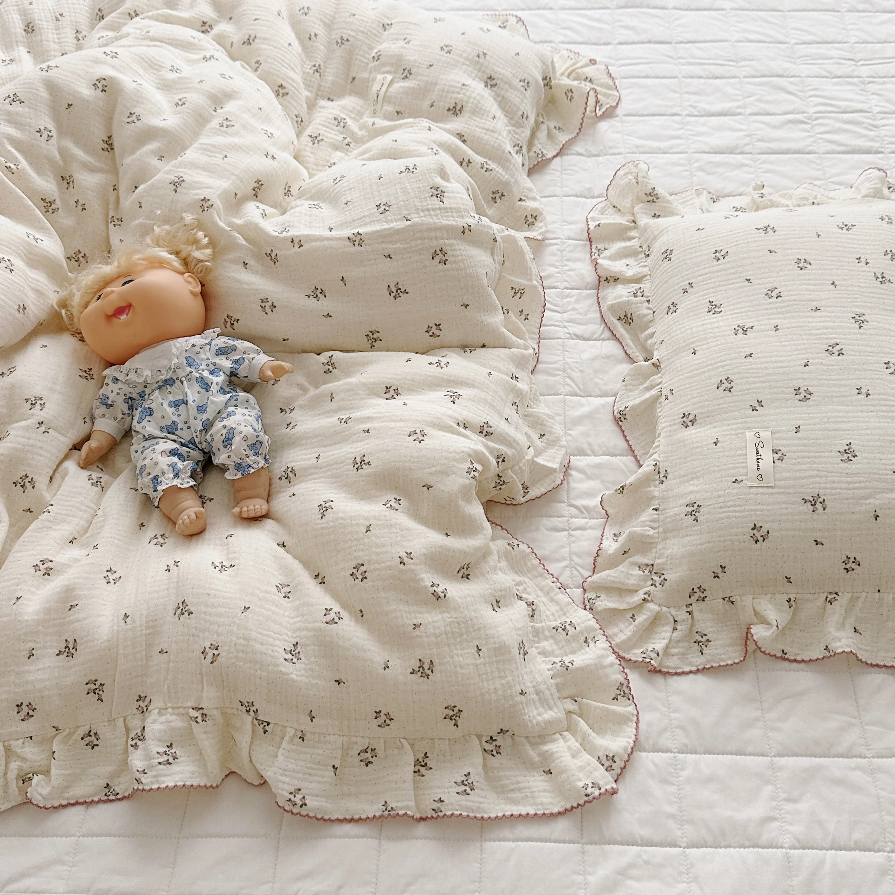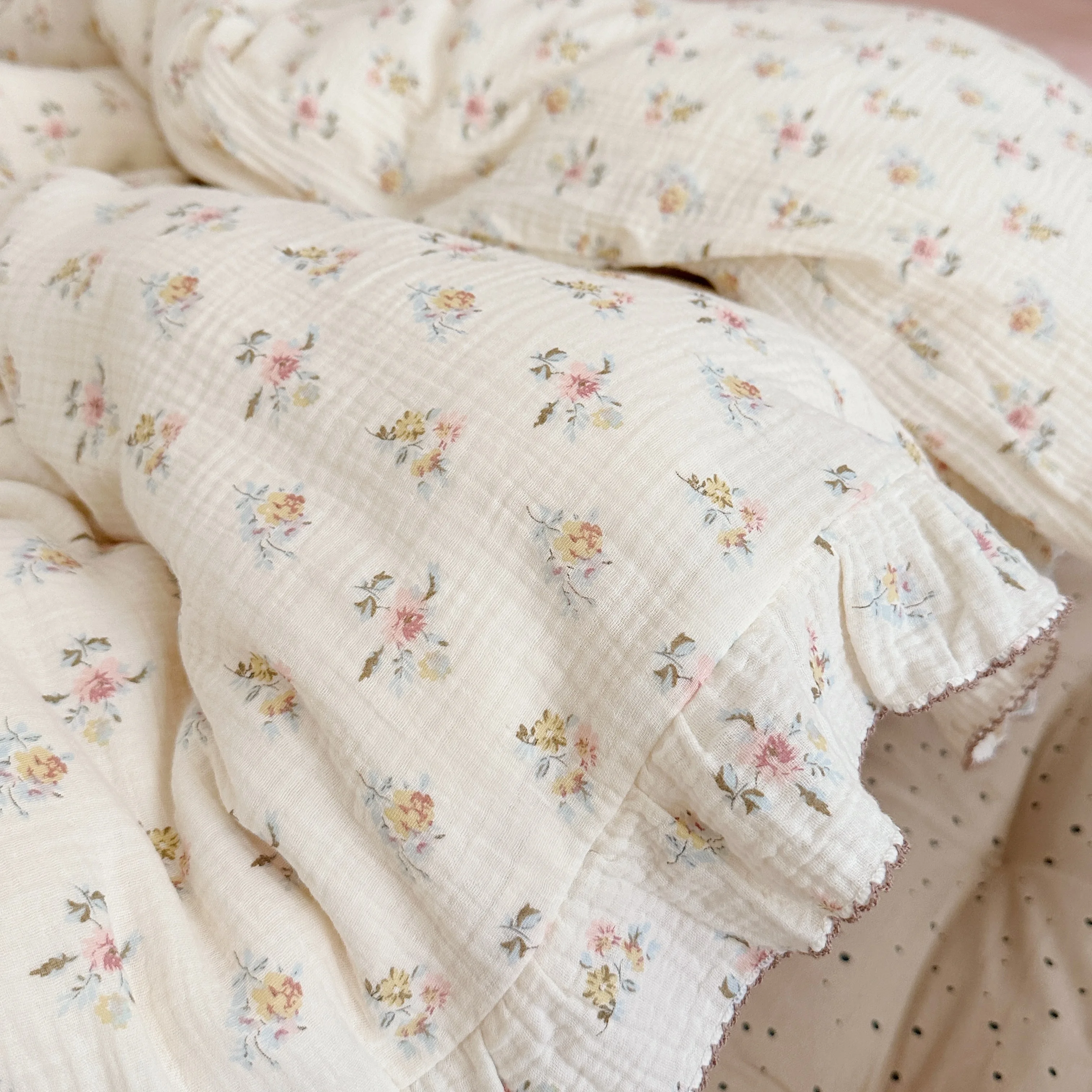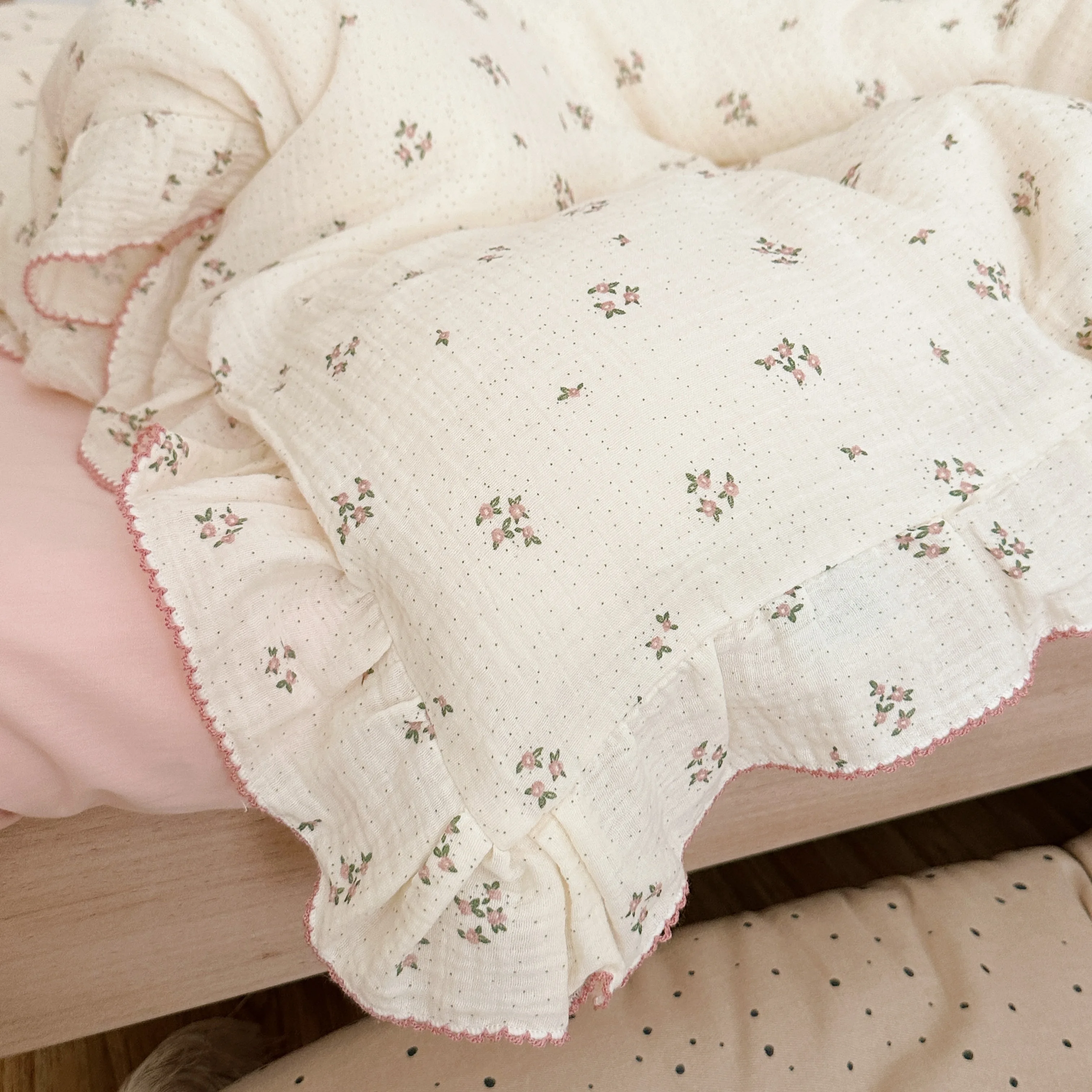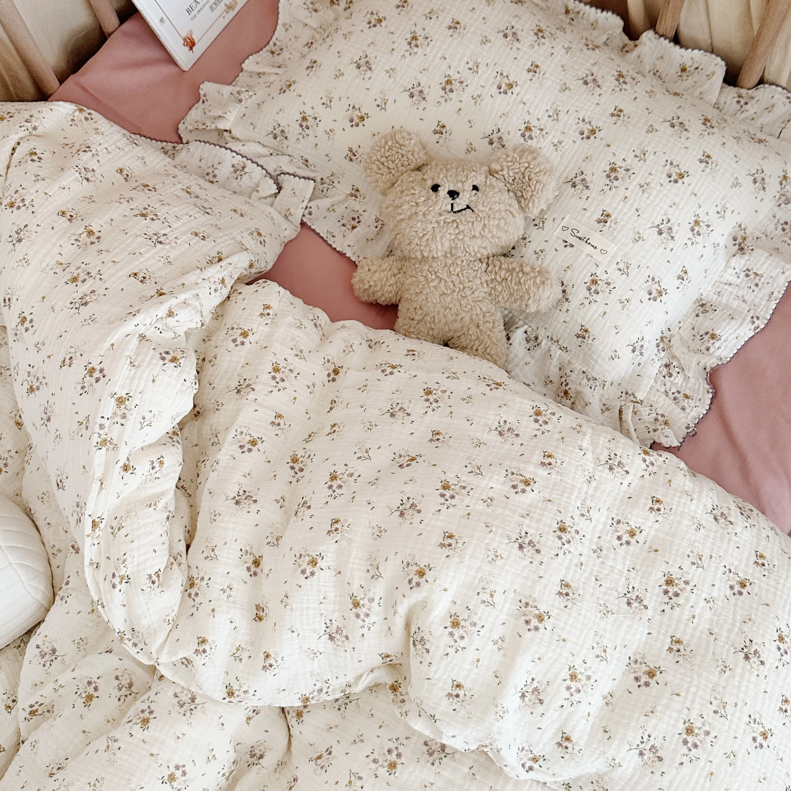 Conjunto de cama de cuna de algodón y muselina Floral Vintage para niños, funda nórdica de lino para cama, funda de almohada sin relleno