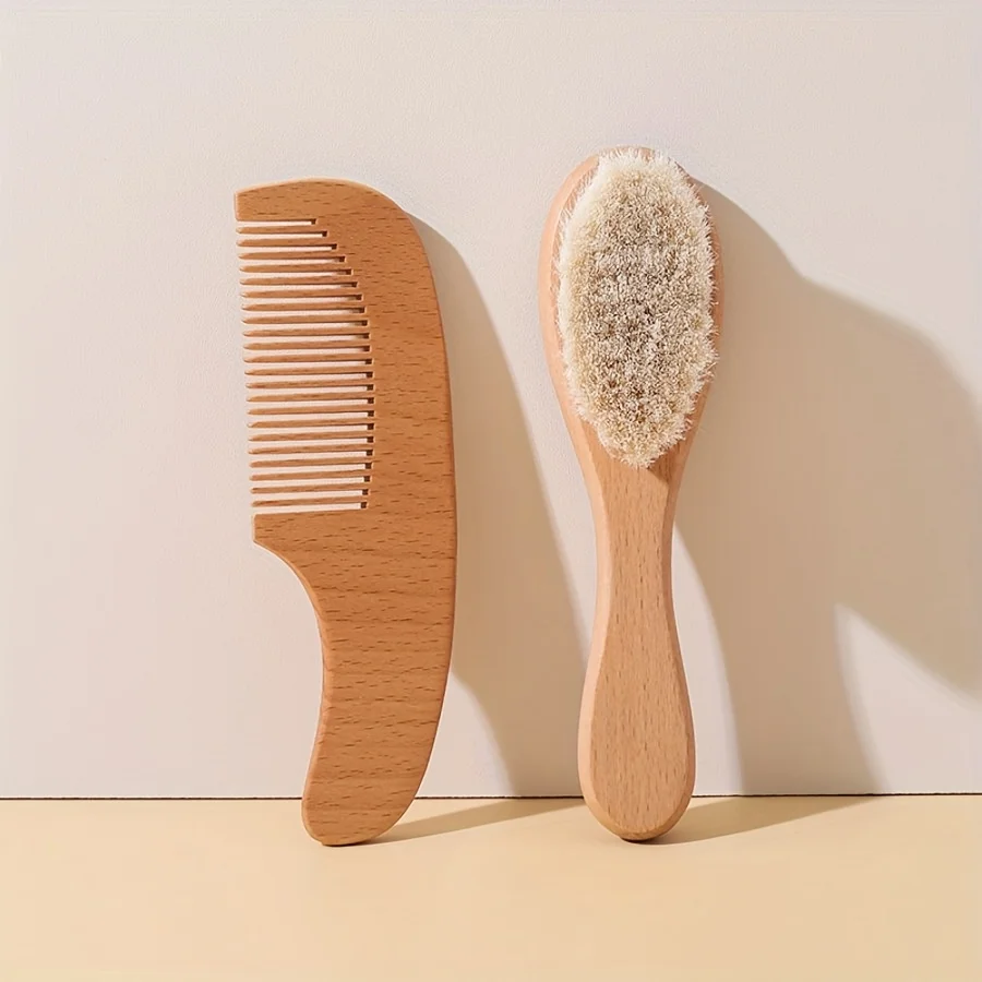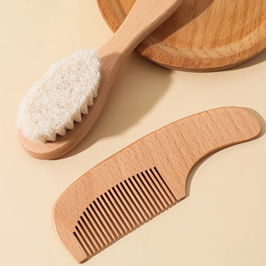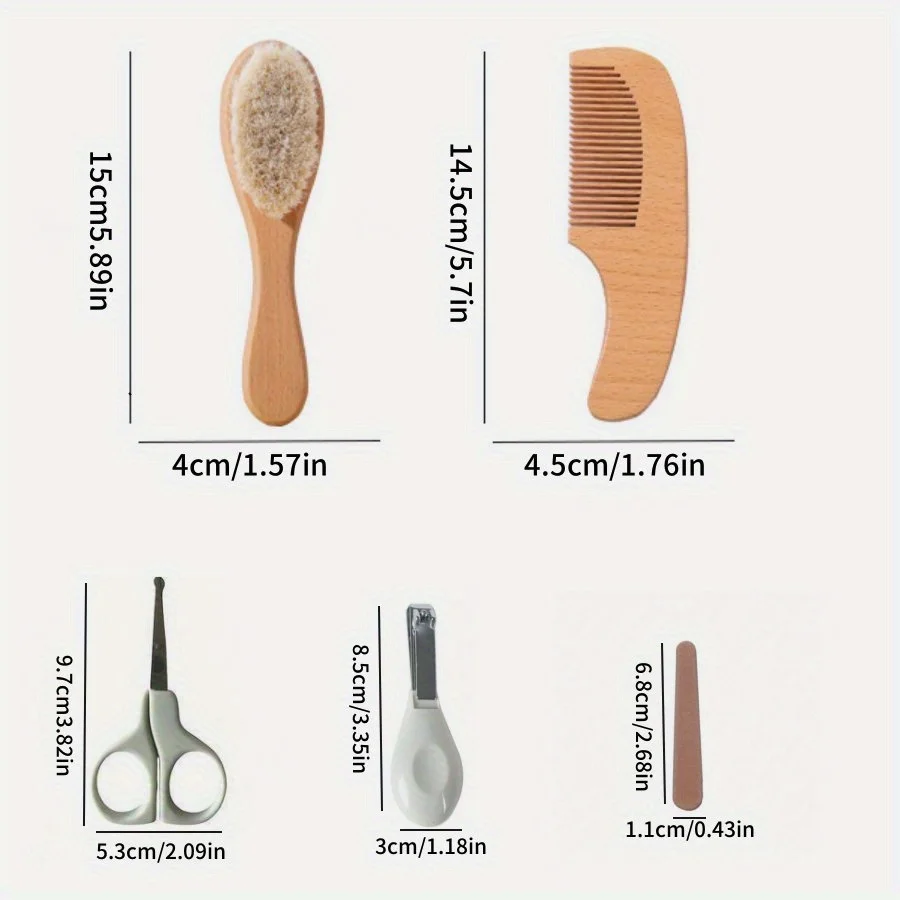 Comprar Juego de cepillos para bebés - Cepillo para el cabello suave para limpieza del cuero cabelludo recién nacido - Cortauñas para baño y masaje de madera de haya - Tijeras para uñas - Lima para uñas