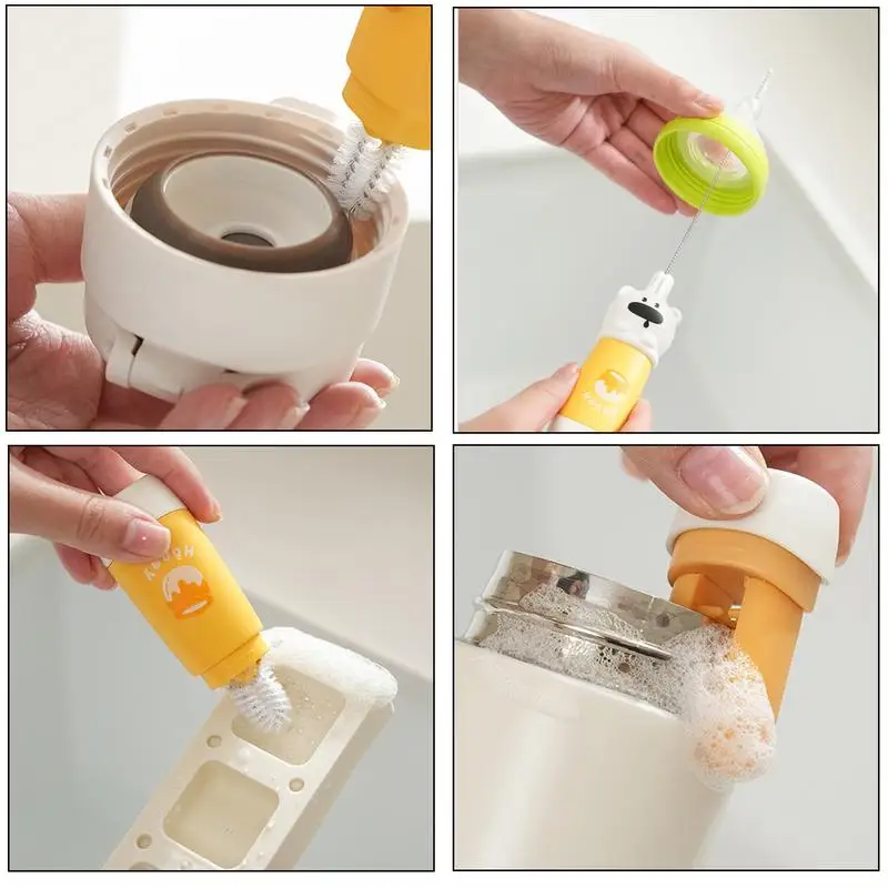 1. Solución completa para la limpieza: el juego de cepillos para biberones 4 en 1 es una solución de limpieza integral meticulosamente diseñada para fregar todo tipo de biberones, tetinas, tapas de tazas y áreas desafiantes.