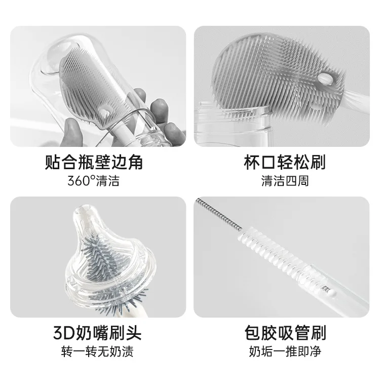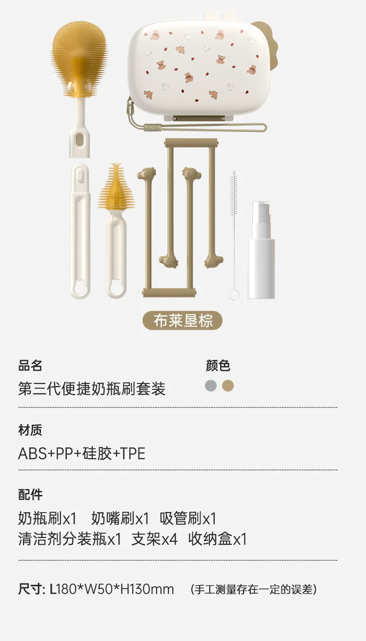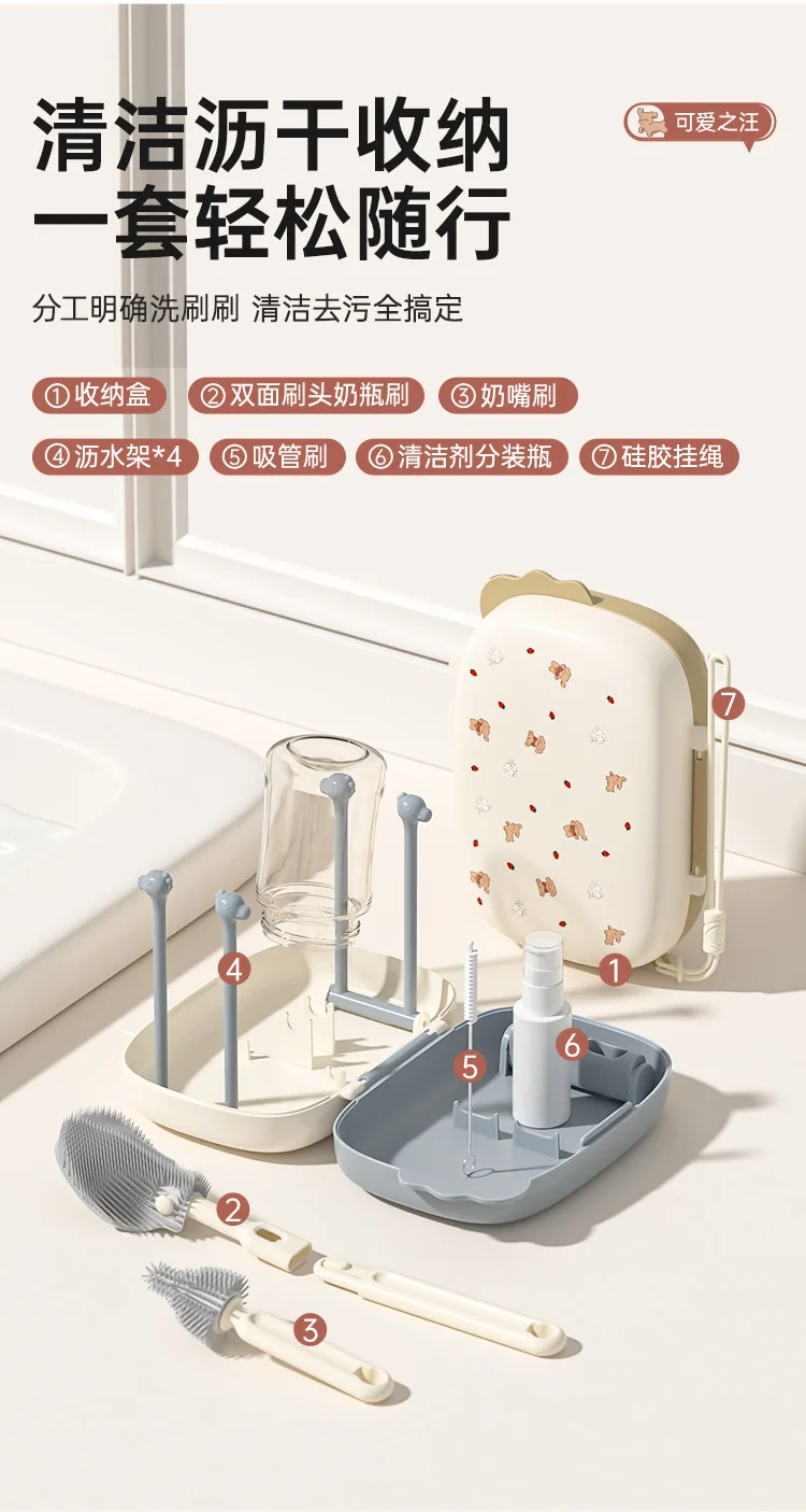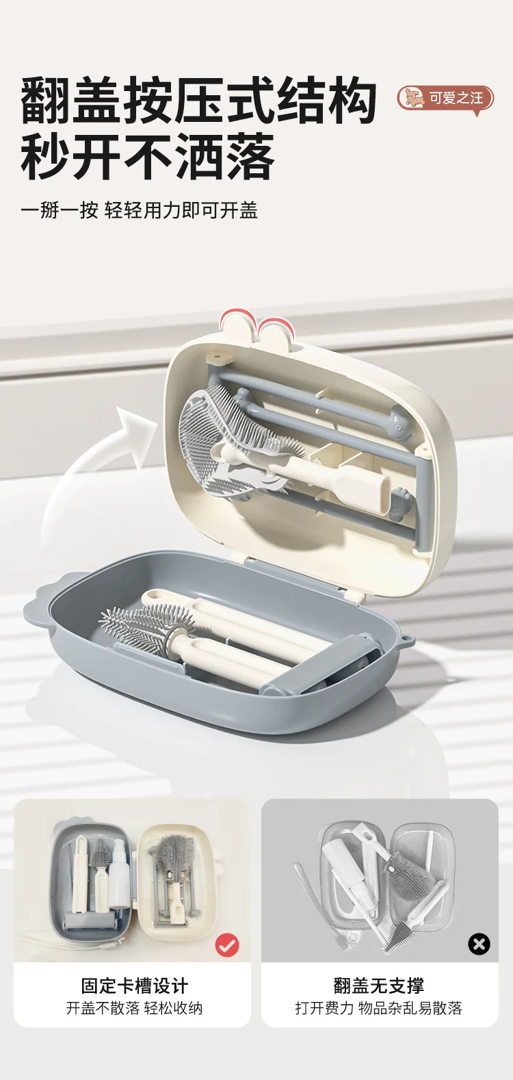 Juego de cepillos de limpieza de biberones portátil, caja de almacenamiento de viaje con cepillo de doble cara, 360 ° Diseño de limpieza, ligero y fácil de usar